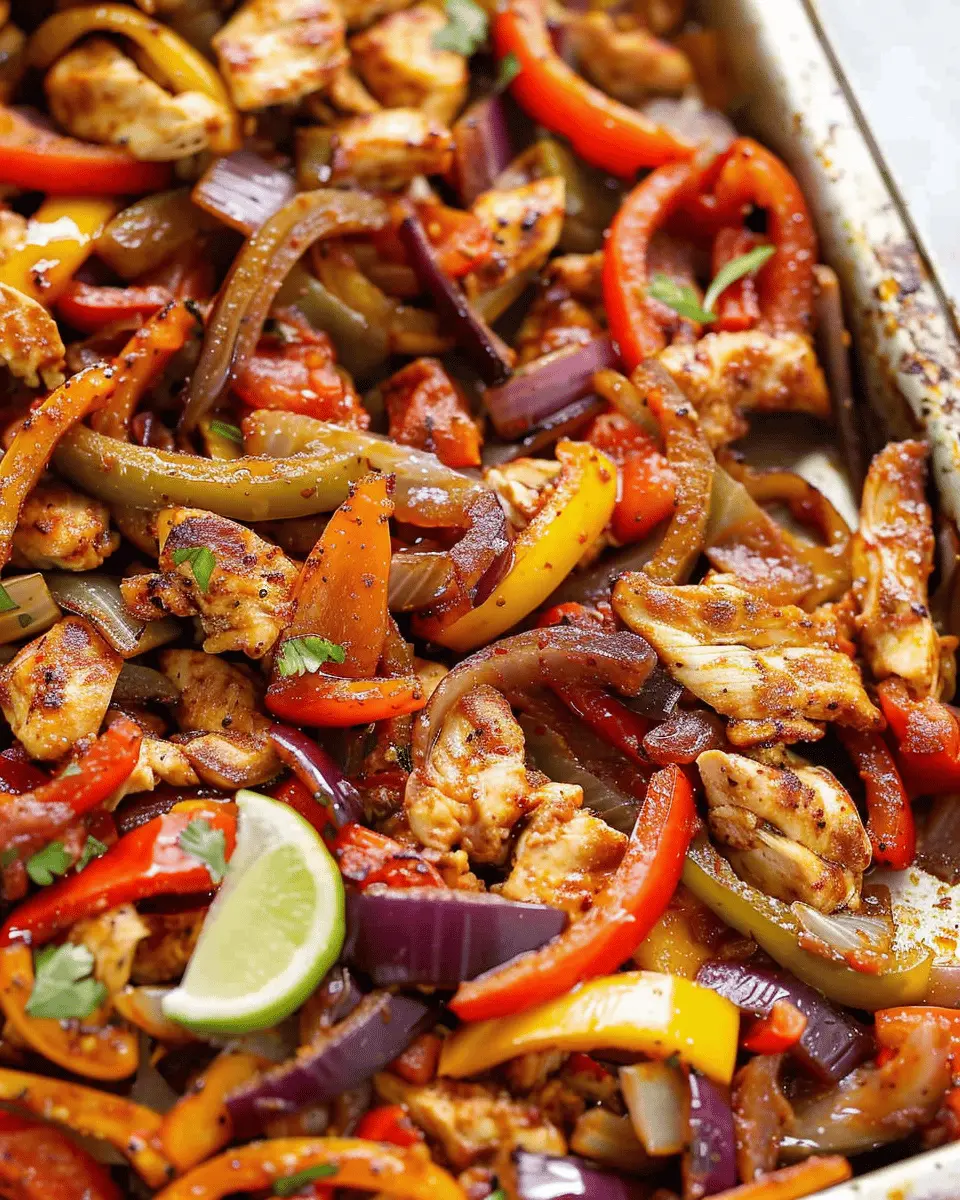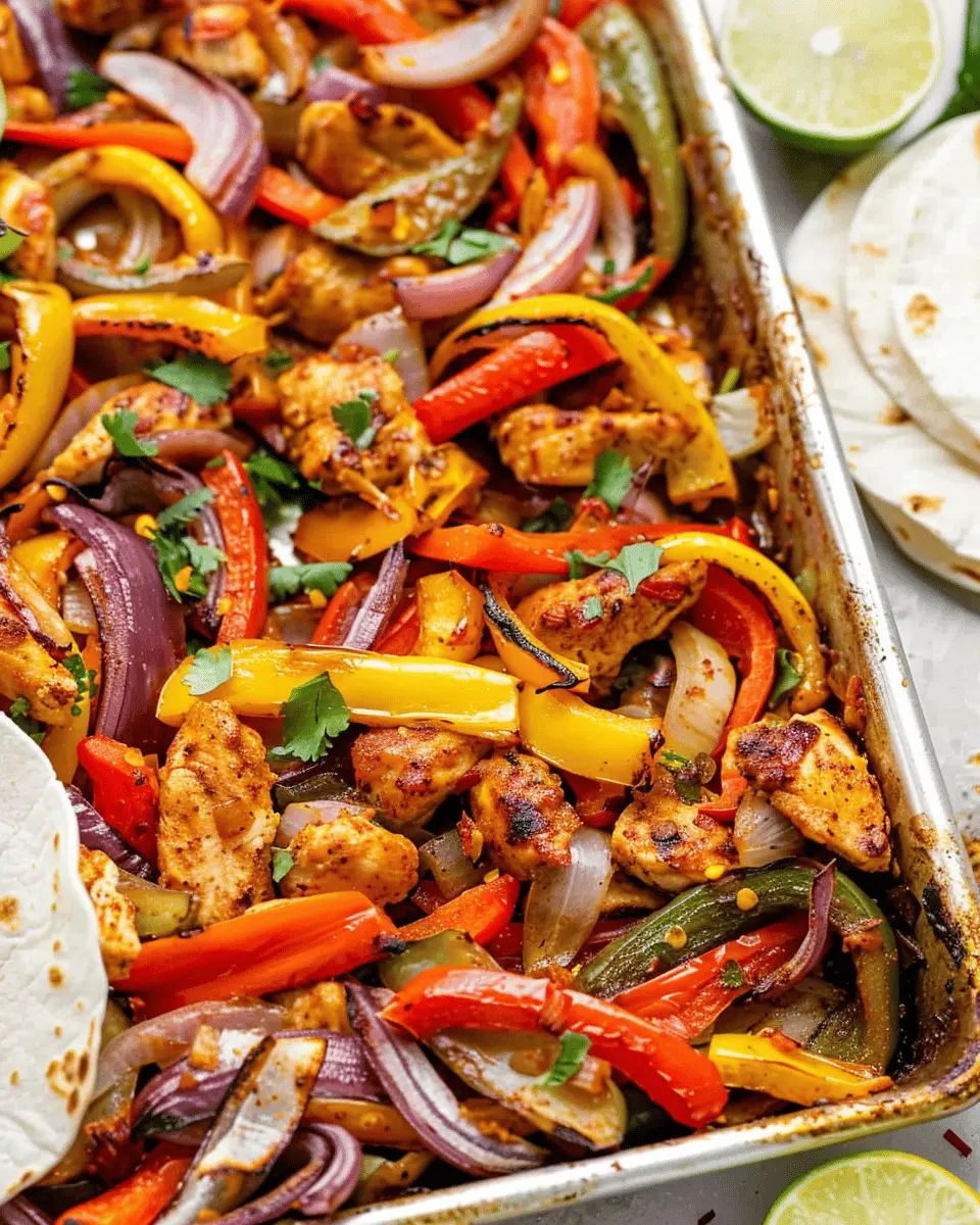 A quick and easy recipe for flavorful chicken fajitas made in just 30 minutes using a sheet pan.