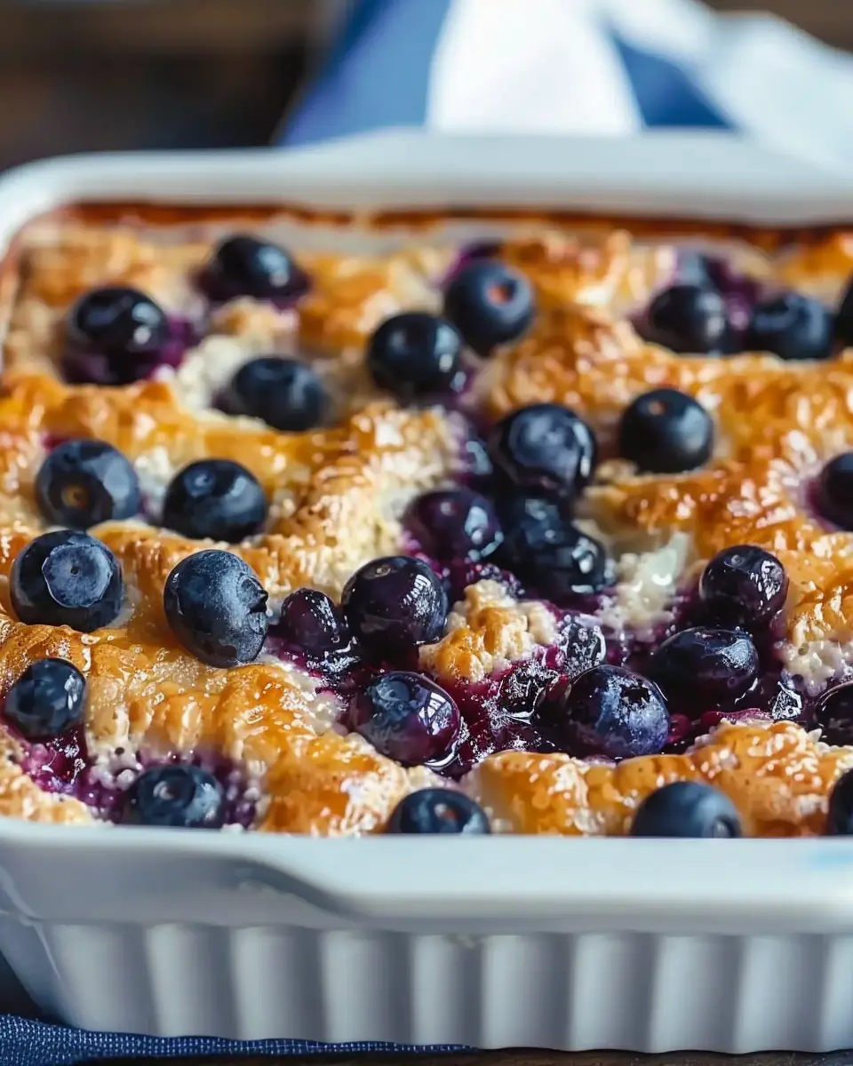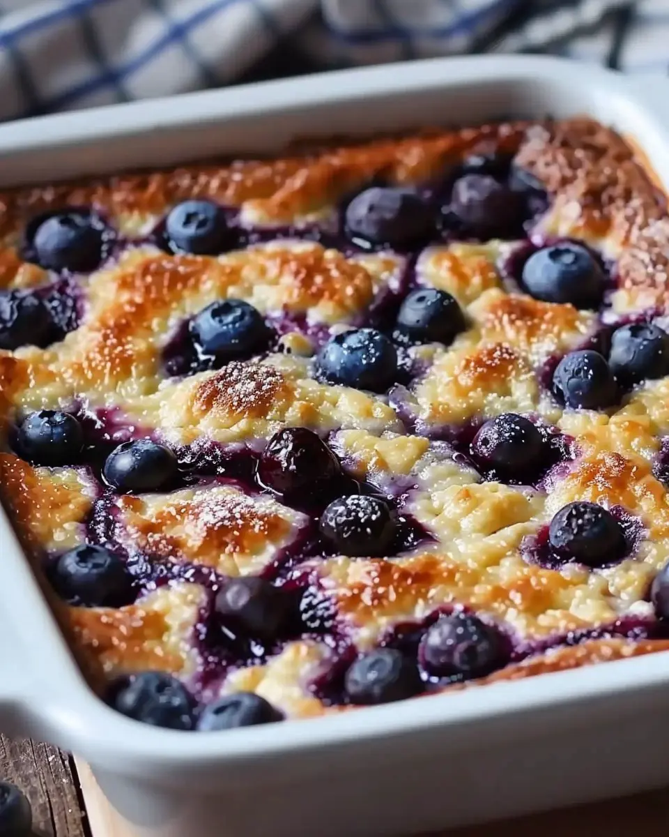 A deliciously easy breakfast bake featuring blueberries and cottage cheese.