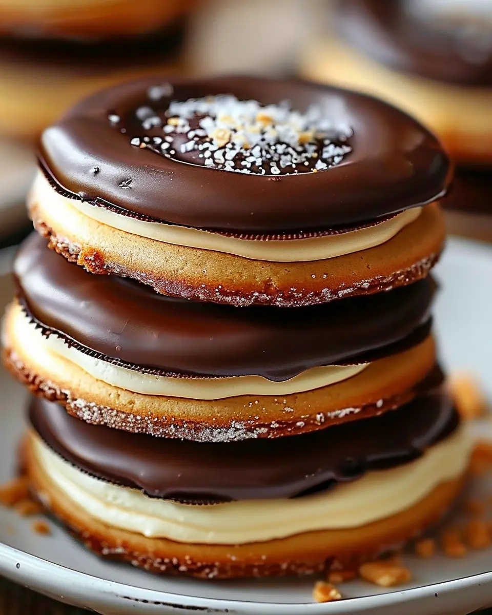 Once your cookies have cooled, it’s time for the fun part — assembly! Spread a generous layer of your whipped cream filling between two cookies, then dip the tops in melted chocolate. For an extra touch, sprinkle some chopped nuts or shaved chocolate on top before the glaze sets.