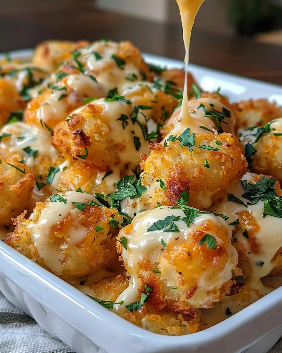 • Crowd-Pleaser: It’s a perfect dish for gatherings, and let’s face it—who wouldn’t say yes to a plate full of crispy tater tots covered in cheese?