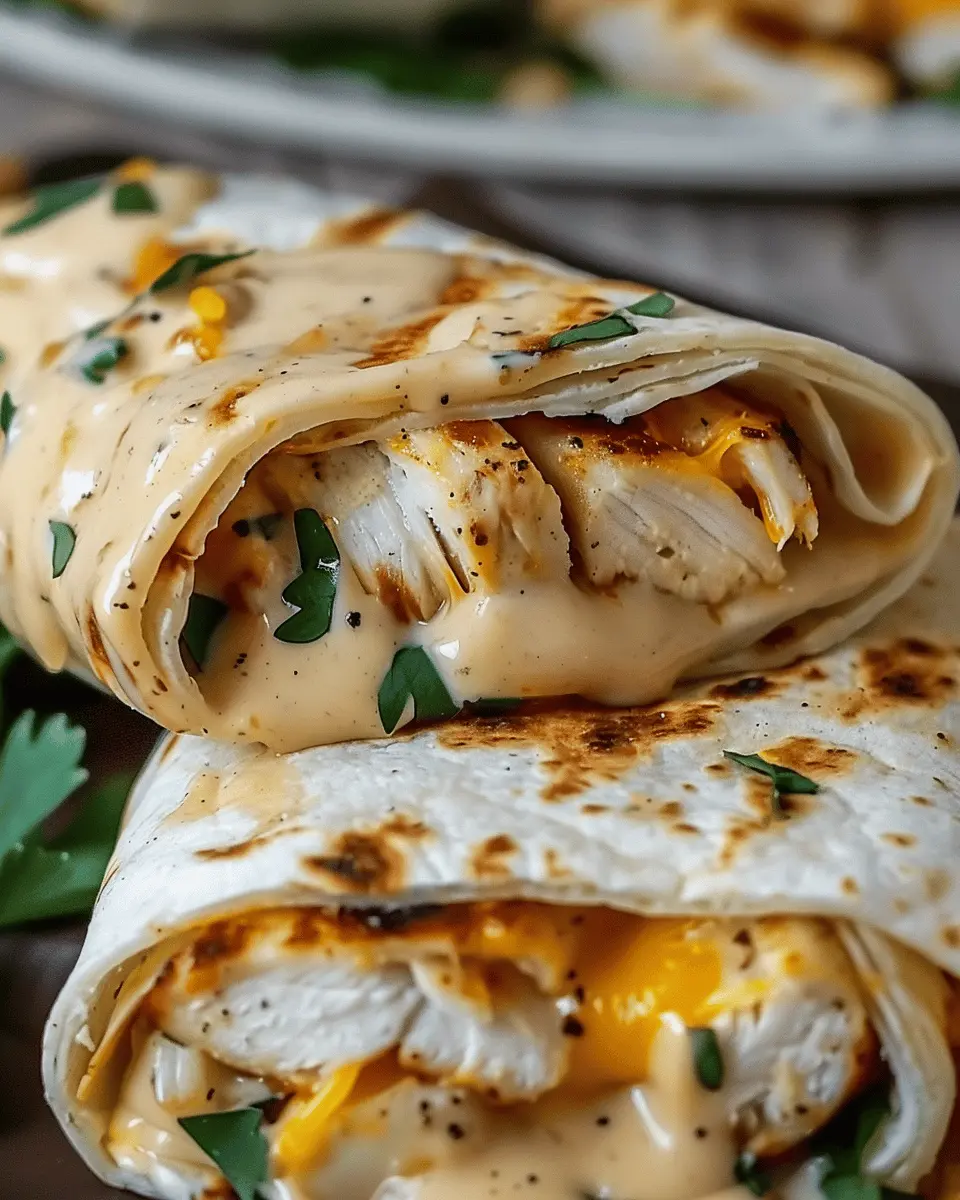 This Cheesy Garlic Chicken Wraps recipe is easy to make and full of flavor, perfect for a quick dinner!