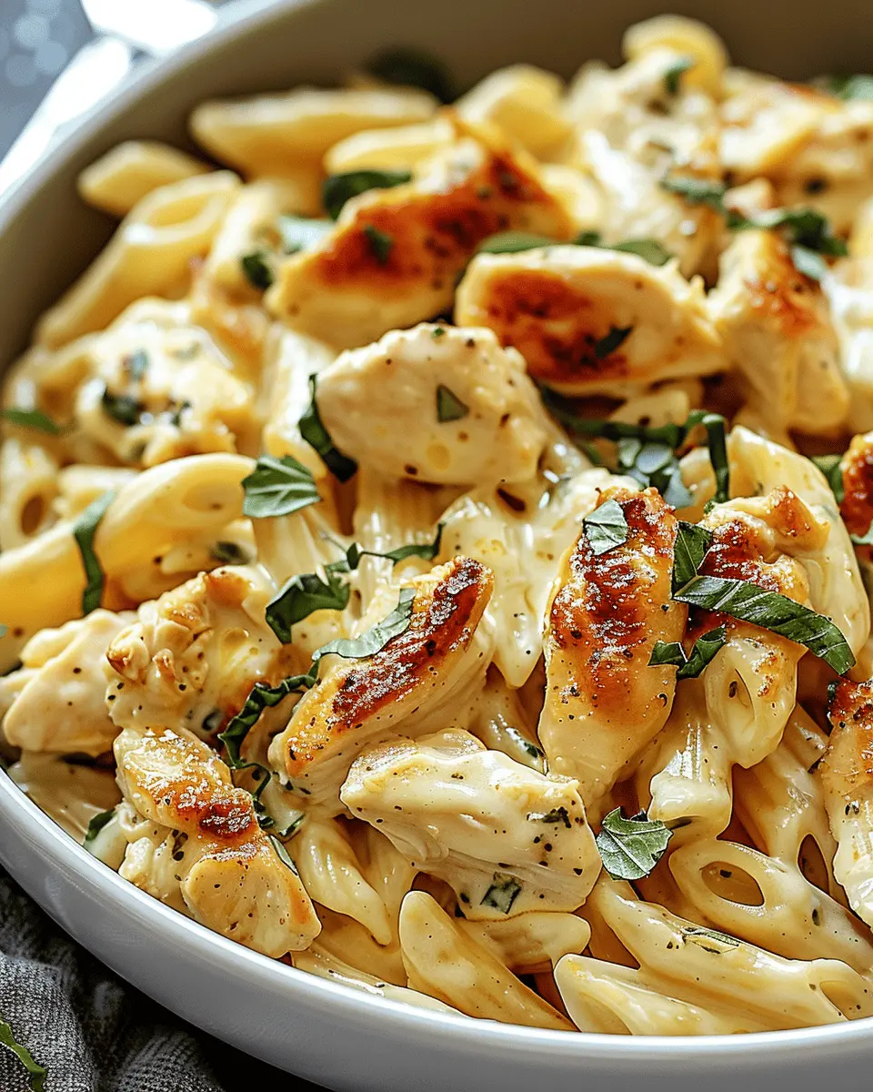 Imagine the comforting embrace of creamy pasta paired with tender chicken and vibrant spinach. This variation not only tantalizes your taste buds but also packs a nutritious punch.