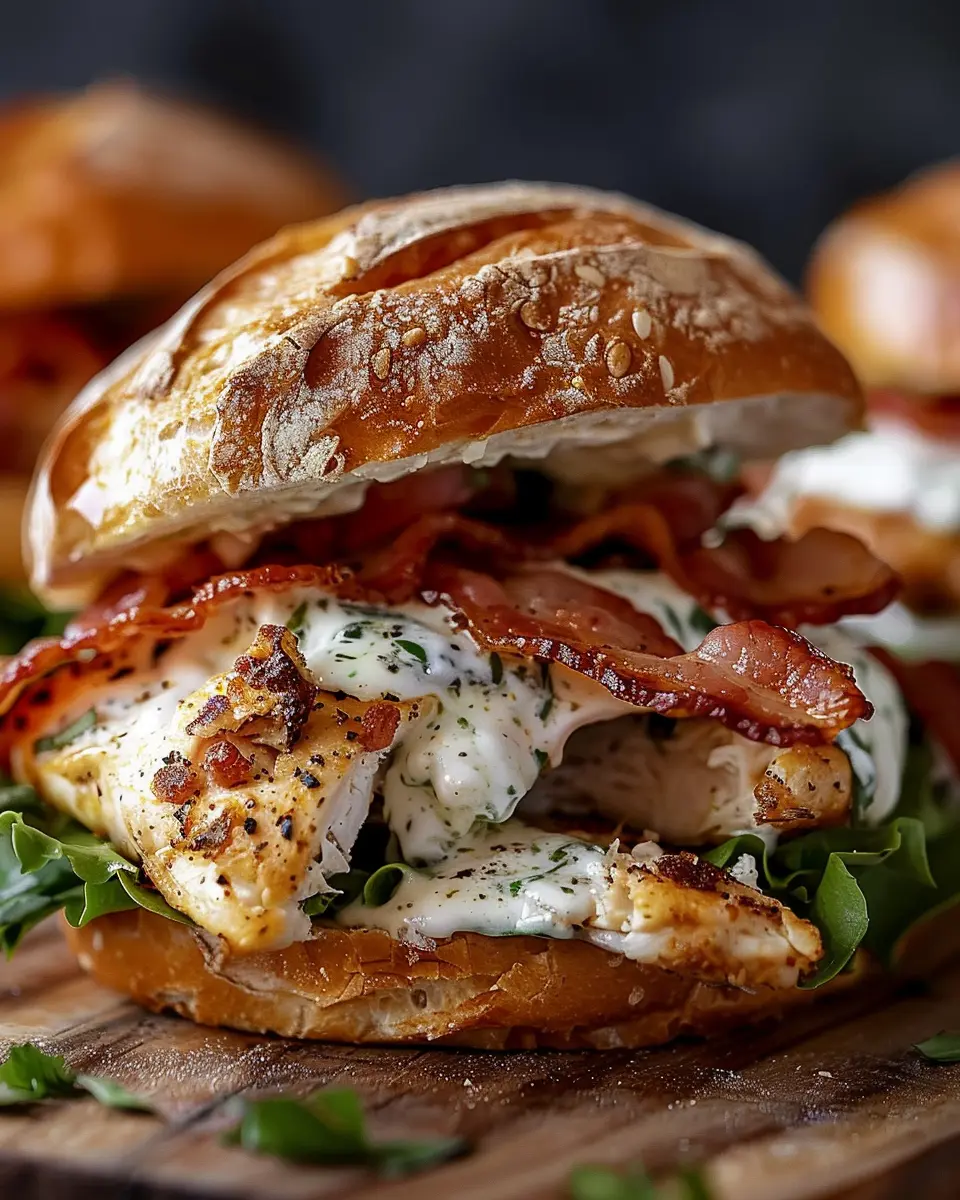 Ciabatta or Focaccia: For a gourmet touch, serve your sandwich on ciabatta or focaccia bread. These options provide a chewy texture that beautifully complements the tender chicken and turkey bacon.
