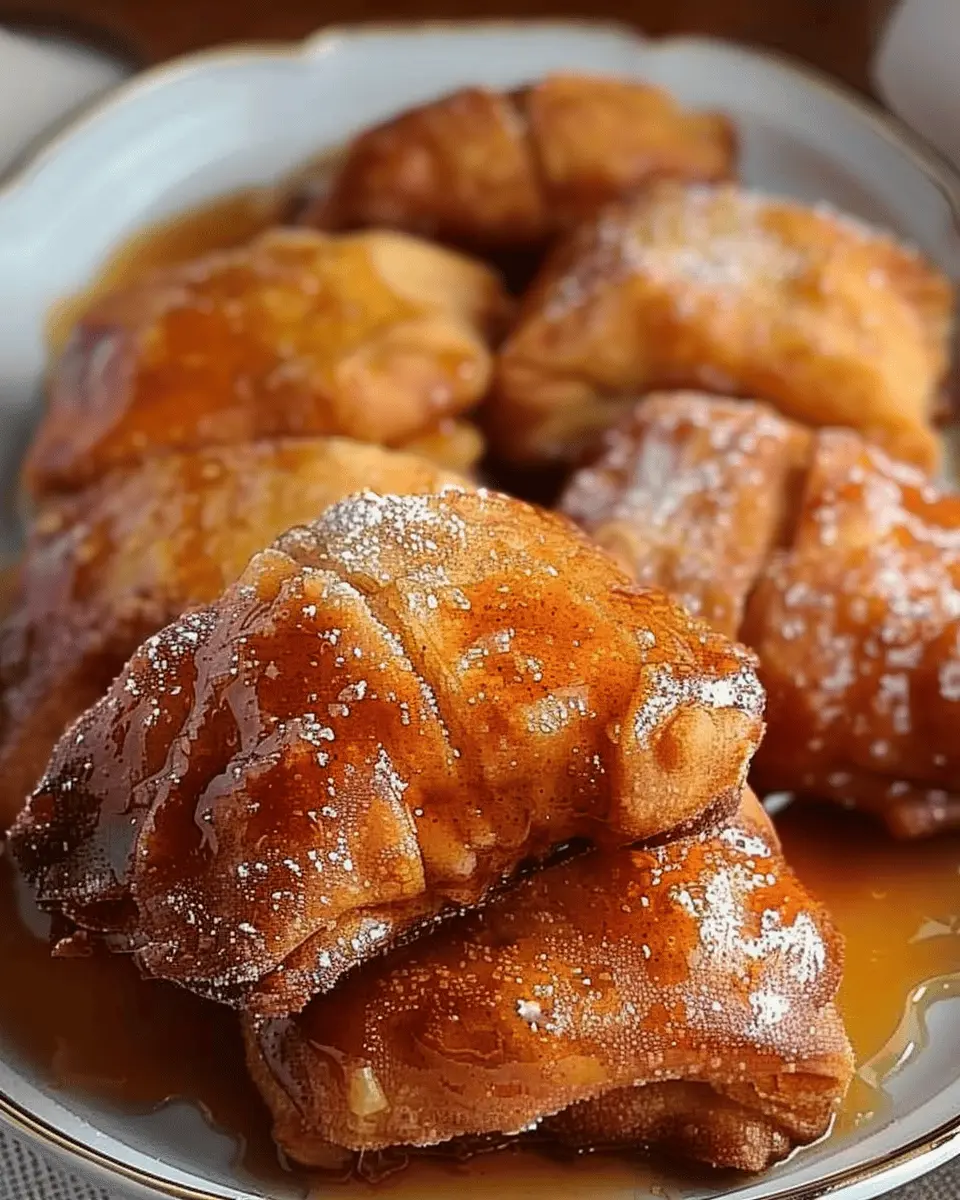 Let them cool for a few minutes before serving. Imagine those crispy, buttery dumplings paired with a scoop of vanilla ice cream—a perfect dessert for any occasion!