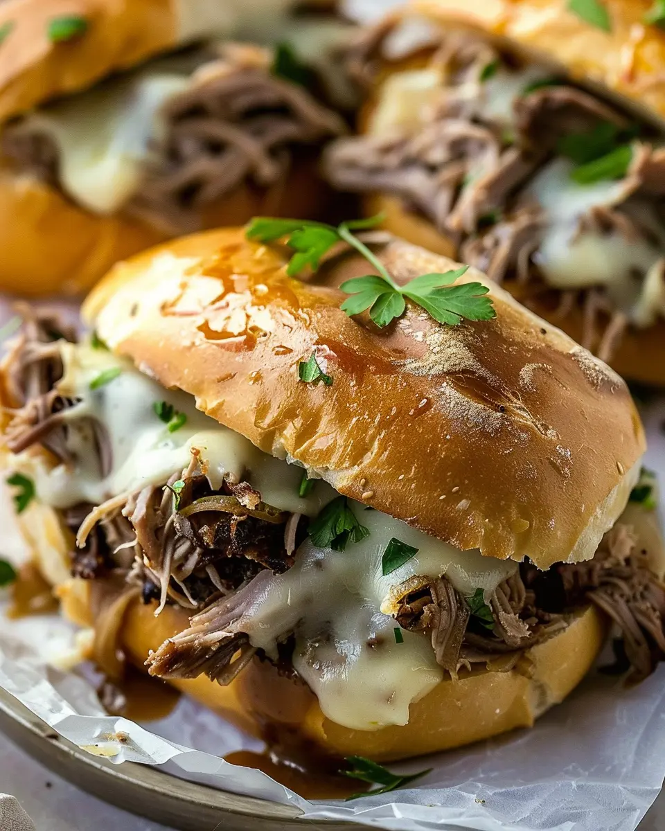 Let’s talk about what makes these sandwiches a go-to, especially after a long day. First off, the slow cooking process allows the beef to become incredibly tender, practically falling apart with just a gentle tug. This isn’t just any old sandwich; it’s an experience—dipping each bite into a rich, homemade broth that elevates the overall flavor profile.