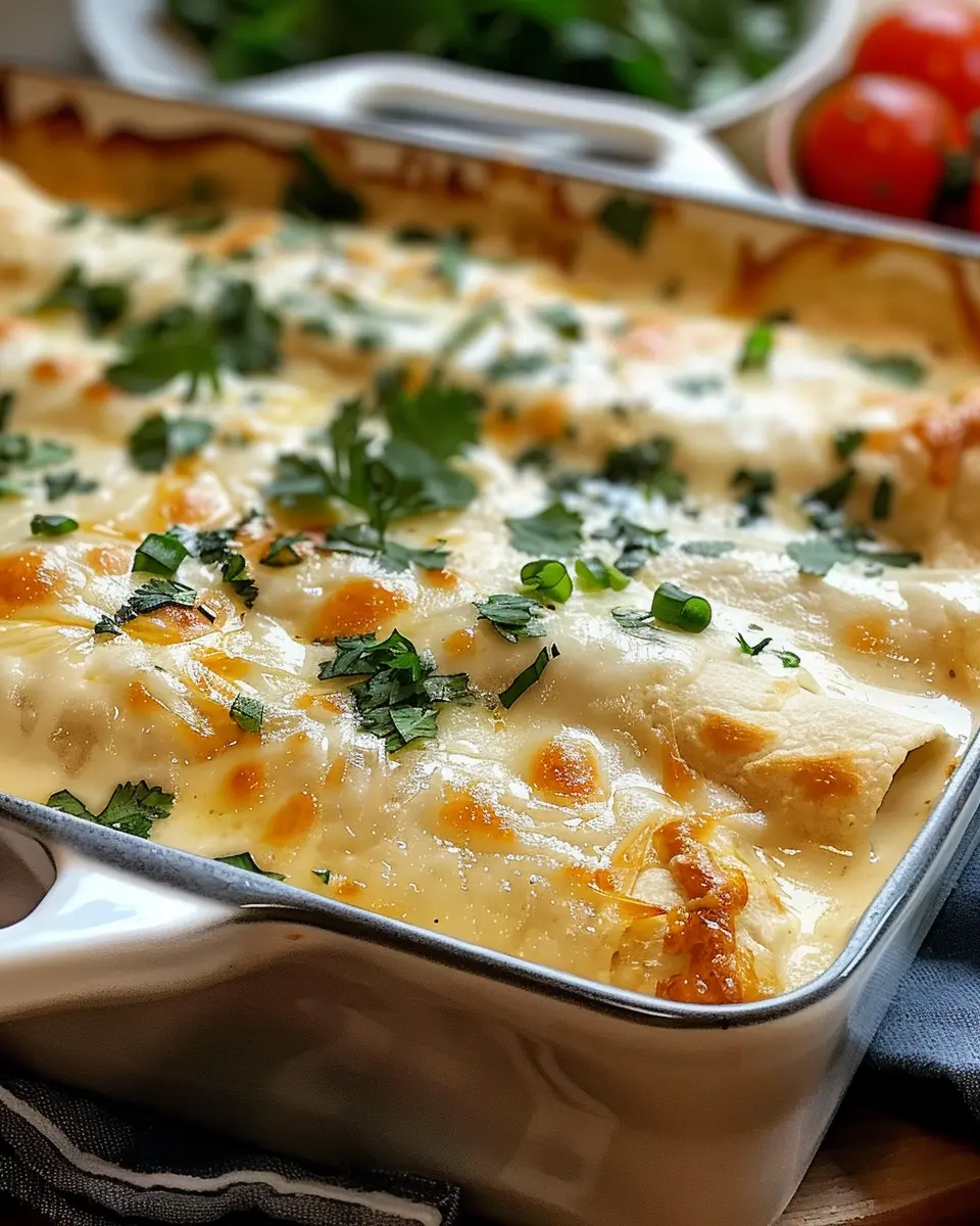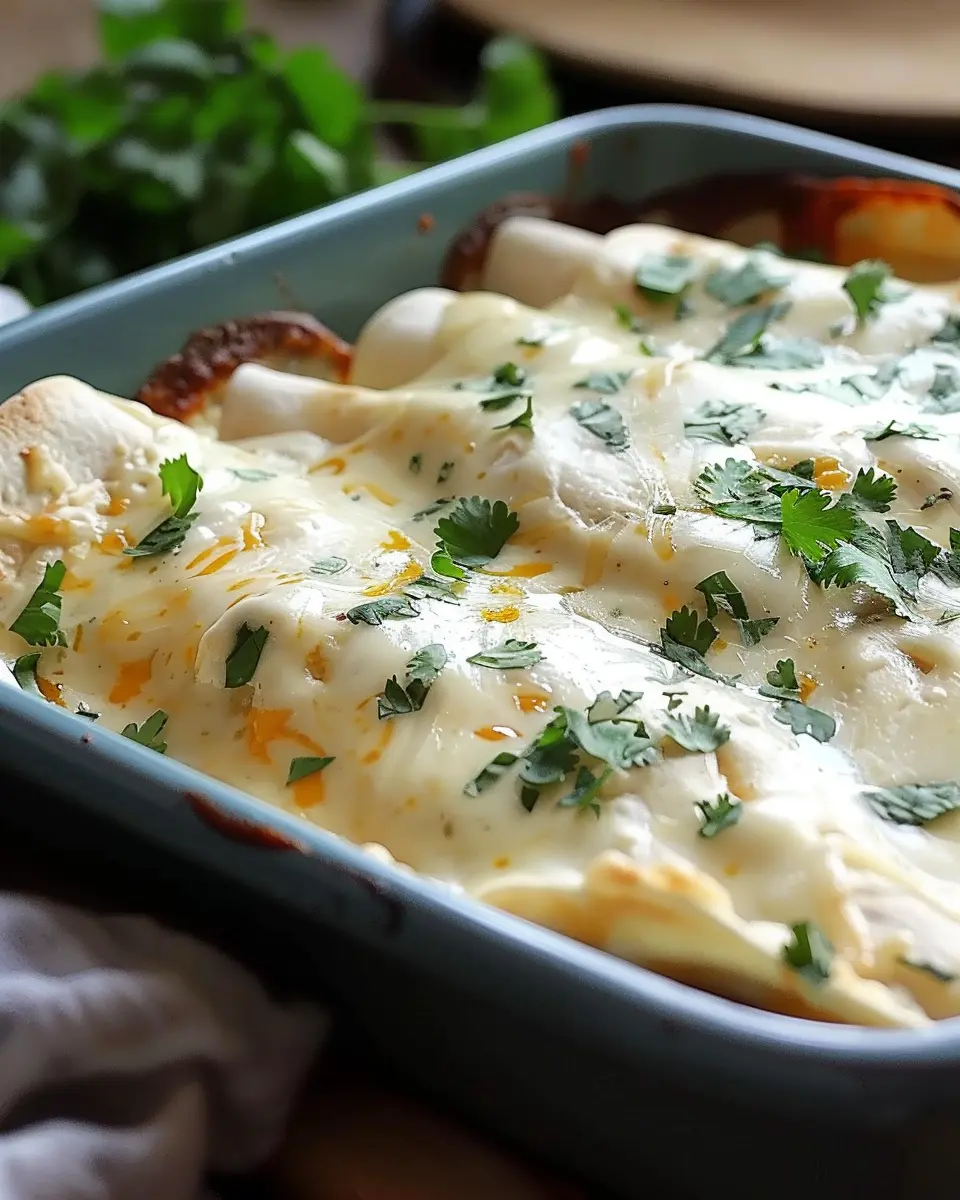 Enjoy this Creamy White Chicken Enchiladas recipe that combines tender chicken with creamy sauce wrapped in tortillas for a comforting meal.