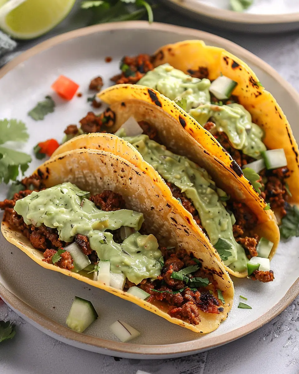 Home » Crispy Baked Ground Turkey Tacos with Avocado Sauce: Easy and Delicious