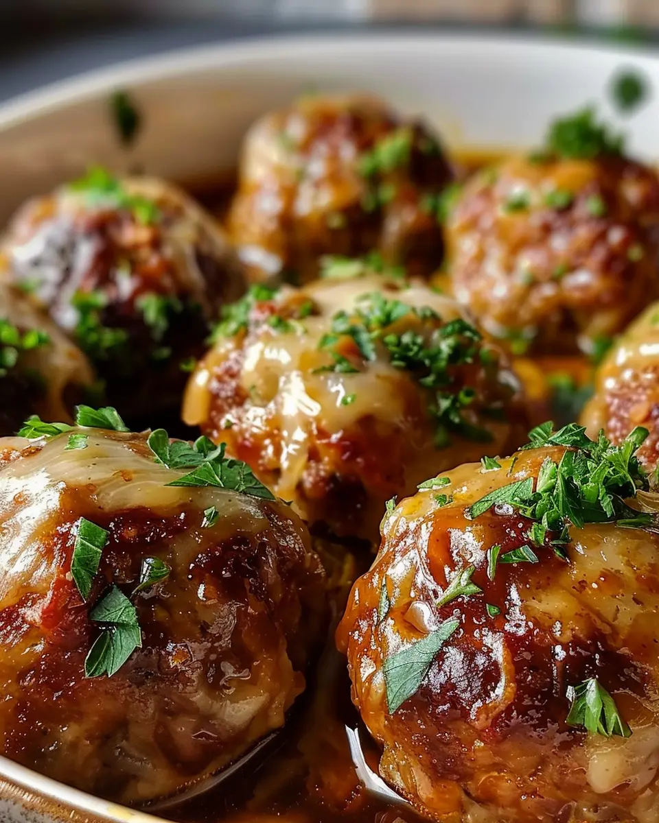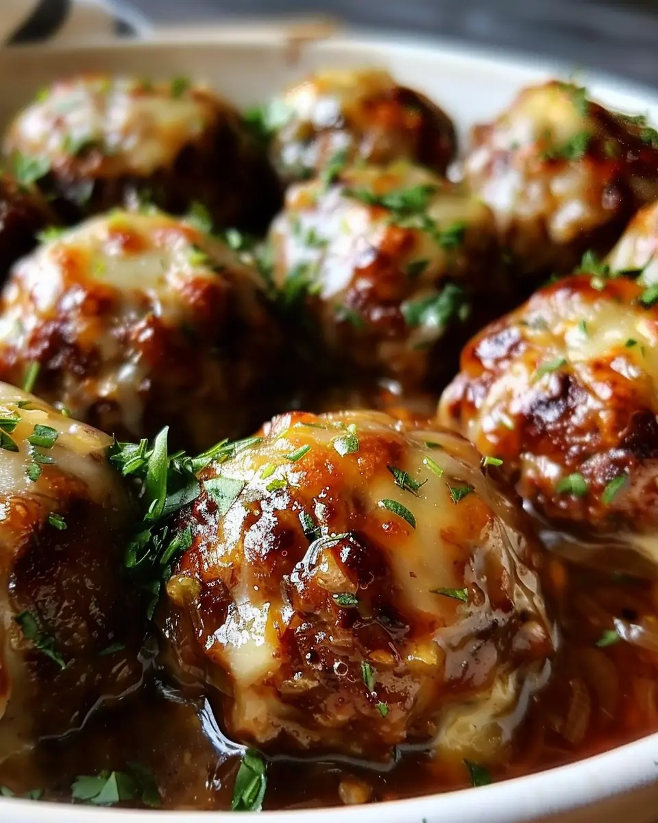 PrintCrockpot French Onion Meatballs: 5 Easy Steps to Comfort Bliss