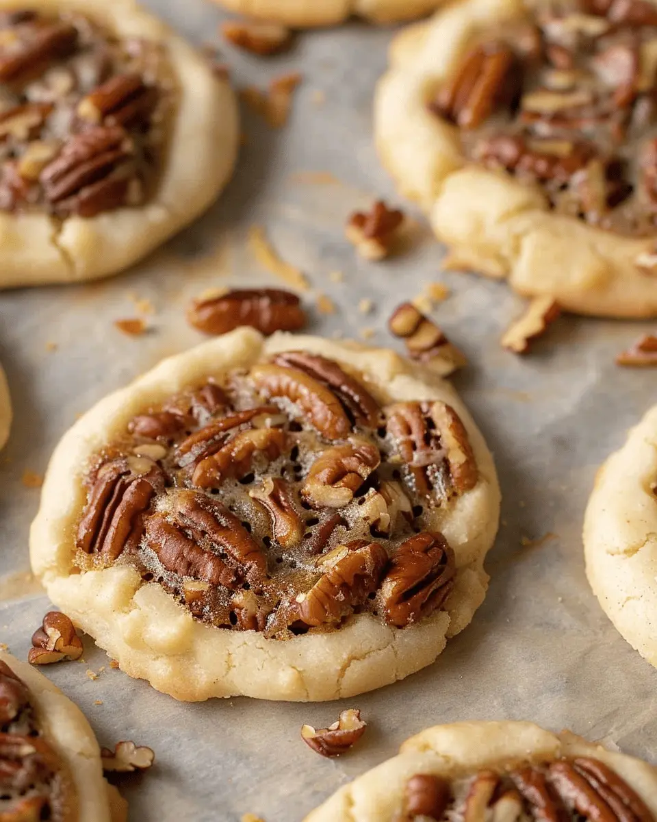 Delightful Crumbl Pecan Pie cookies made with sugar cookies, combining crispy edges and a rich pecan filling.