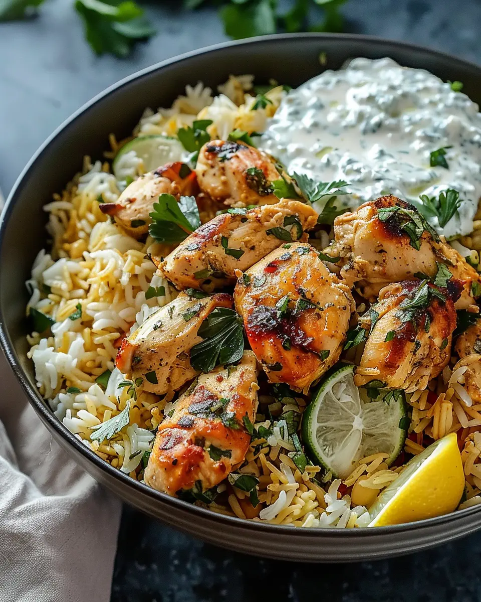 When you’re ready, fluff the rice with a fork and dish out portions topped with any extra tzatziki sauce and fresh herbs. This dish is not just sustenance; it’s an experience to enjoy with friends or family. So, grab a fork and dig into the delightful flavors you’ve effortlessly created!