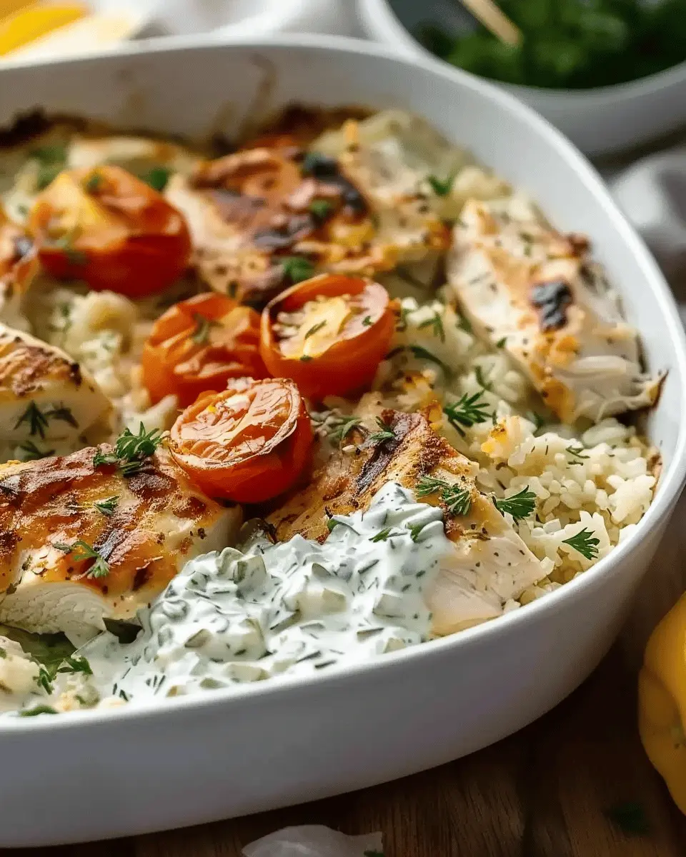 PrintDump-and-Bake Chicken Tzatziki Casserole: Easy Weeknight Delight