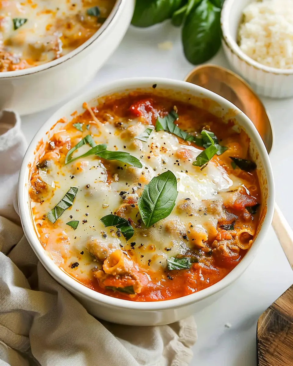PrintEasy Creamy Lasagna Soup: A Comforting Twist with Turkey Bacon