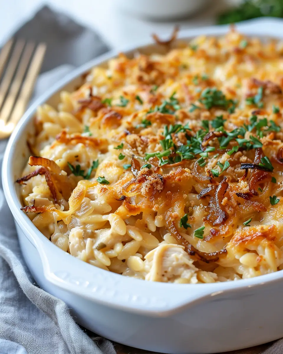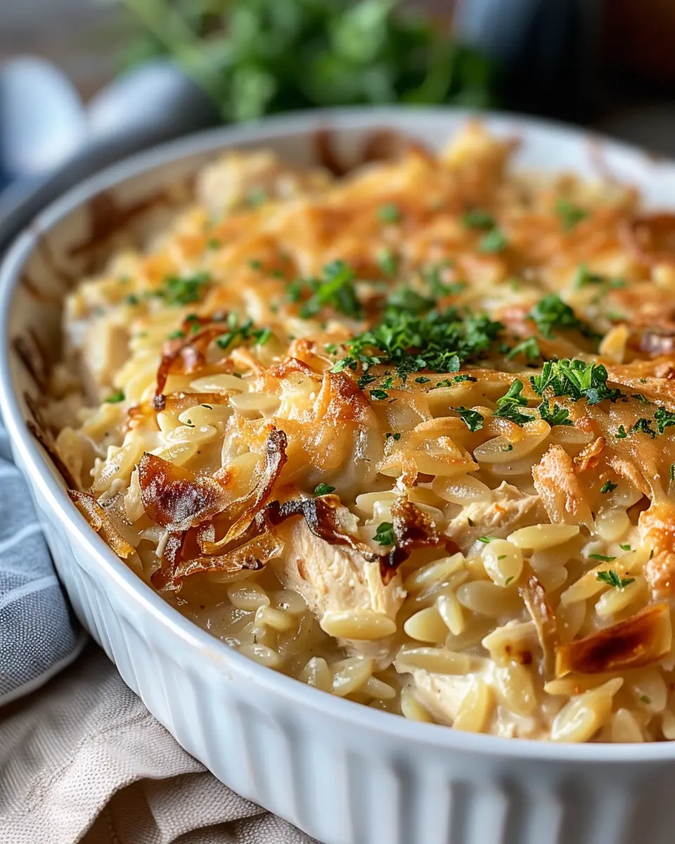 French Onion Chicken Orzo Casserole: A Cozy, Comfort Dish