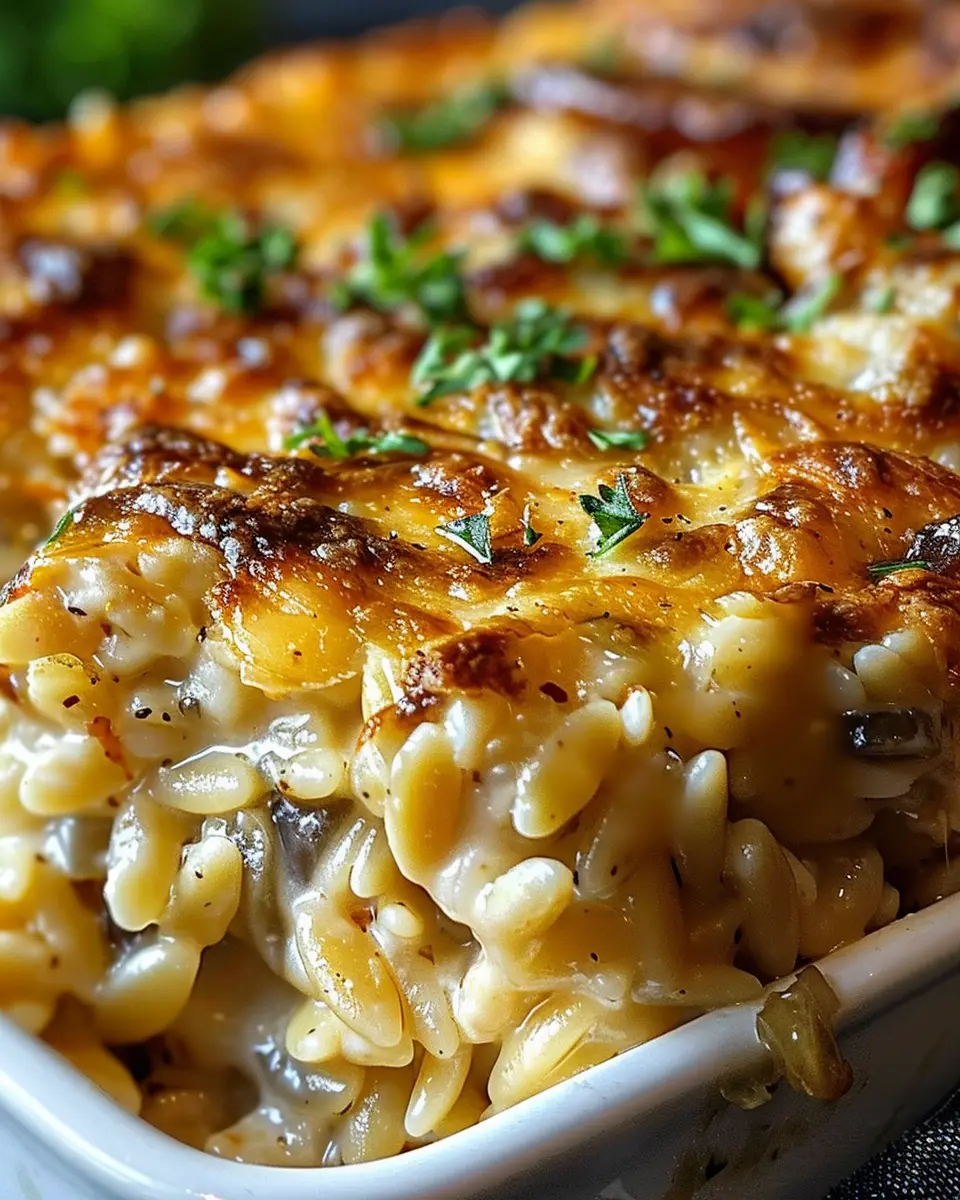 PrintFrench Onion Chicken Orzo Casserole: A Savory Comfort Dish