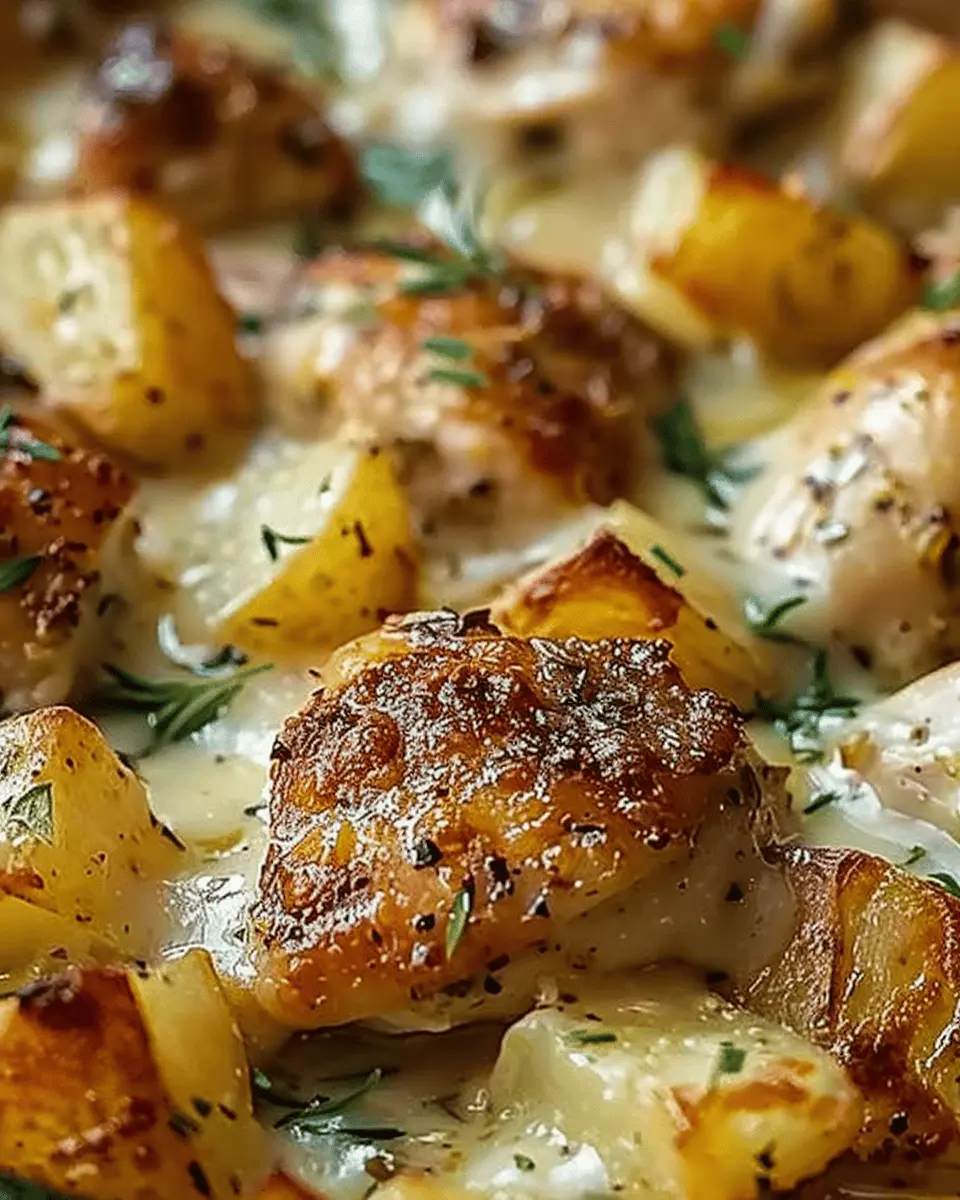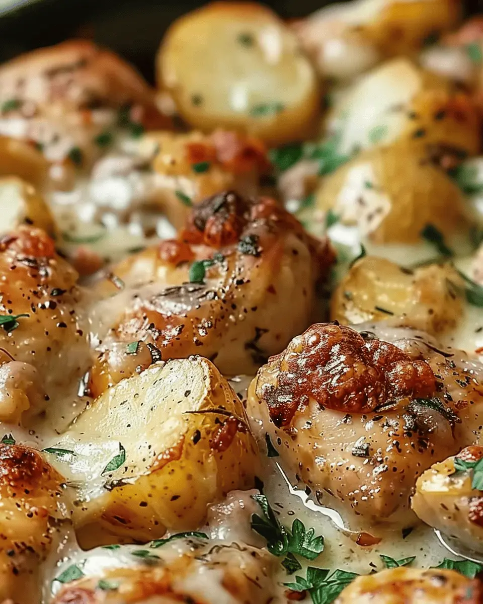 - Pour the mixture over the chicken and potatoes.