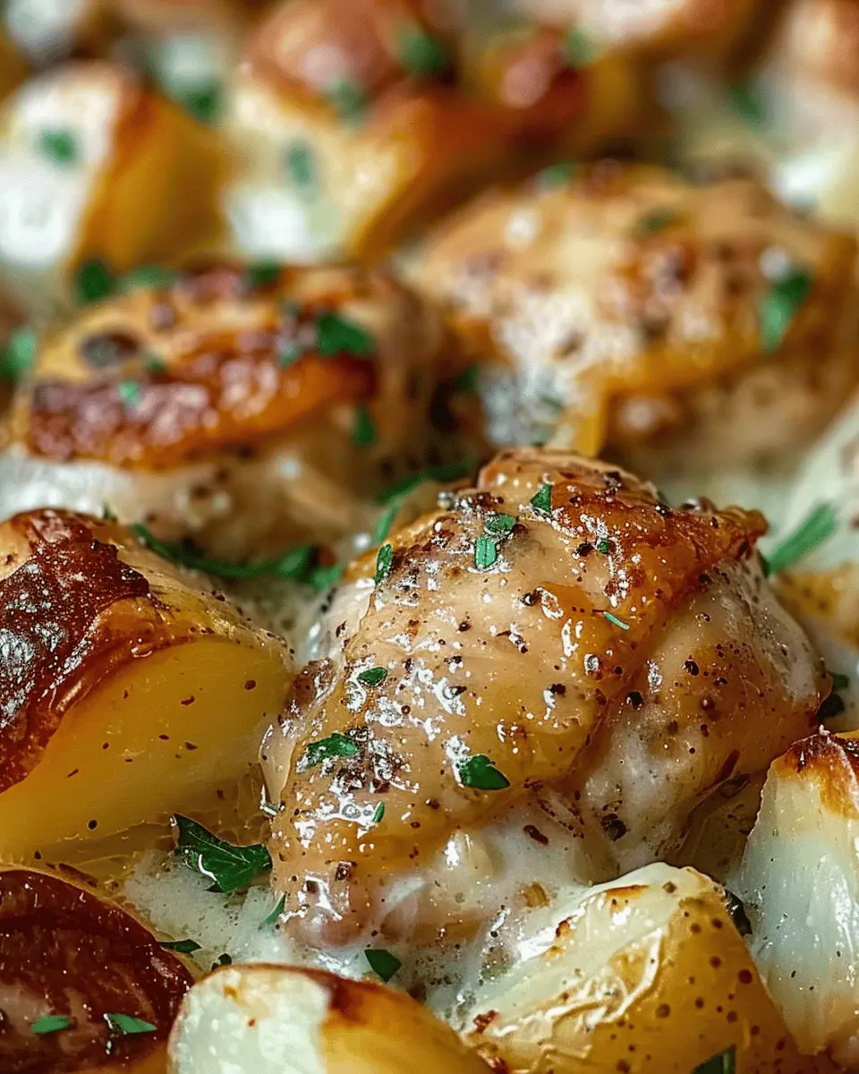 After cooking, carefully remove the chicken and let it rest for a few minutes before slicing. Serve the chicken with a generous scoop of potatoes and sauce on the side. Every bite will give you that perfect combination of savory, creamy, and comforting flavors!