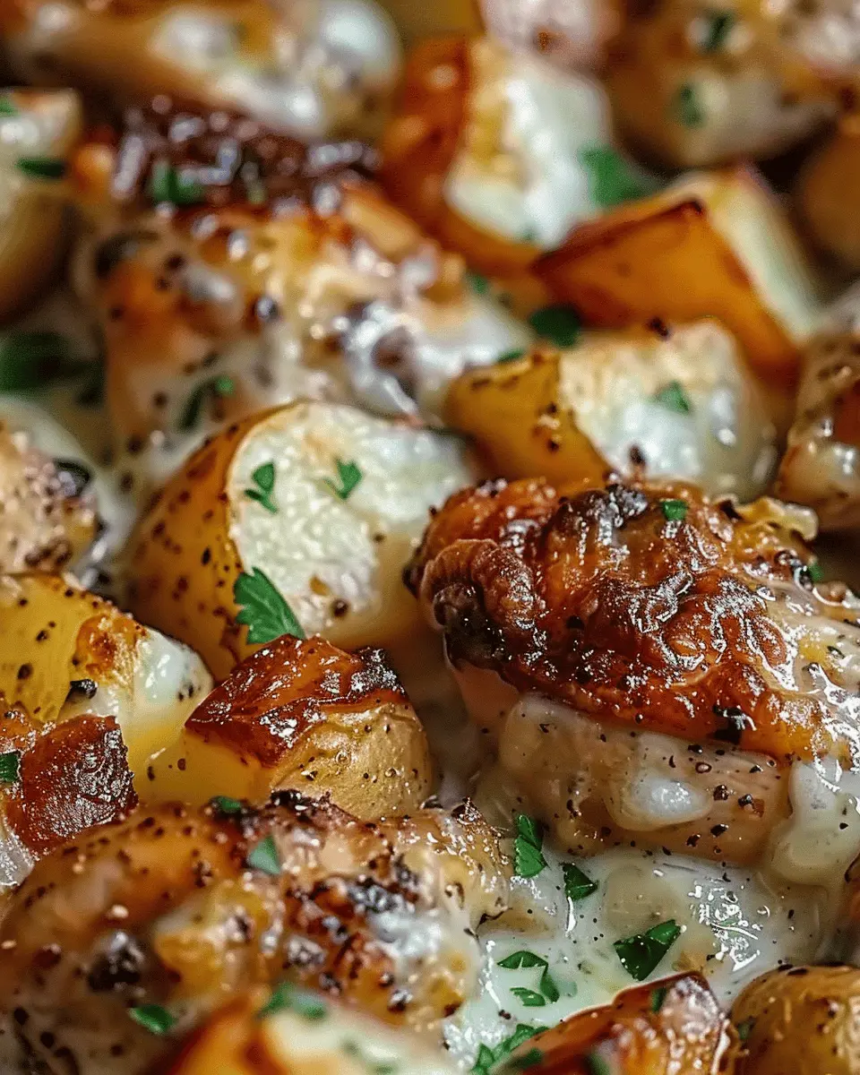 Garlic Parmesan Crockpot Chicken and Potatoes features tender chicken and creamy potatoes coated in a delicious garlic Parmesan sauce, making it the ultimate comfort food.