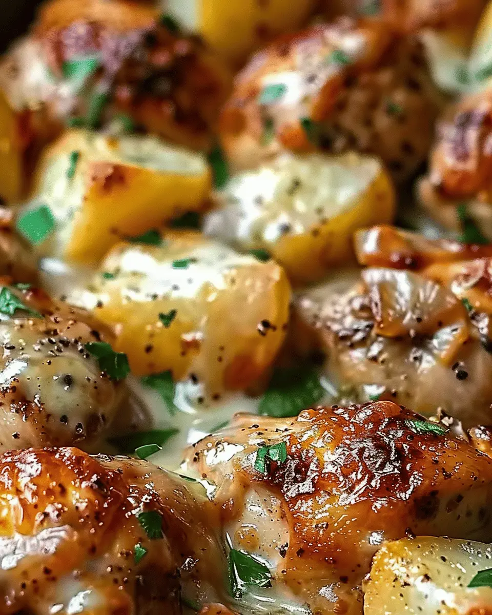 Adding the rich, nutty notes of parmesan elevates the dish even further. The umami-packed cheese not only enhances the flavors of the garlic but melts beautifully into the sauce, coating the chicken and potatoes in a creamy embrace. Imagine coming home to the aroma of this mouthwatering combination—it’s bound to turn any regular evening into something special.