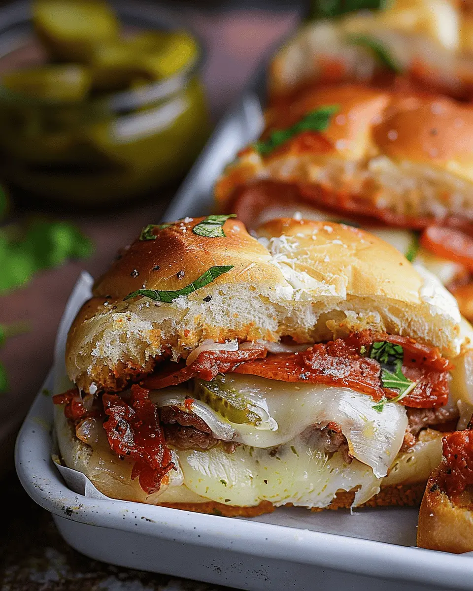 Once you’ve mastered these sliders, why not elevate your serving game? Pair them with a crisp side salad or some homemade potato chips for a delightful crunch. Consider making a dipping sauce using marinara or a zesty vinaigrette to amp up the flavors. The versatility of Hot Italian Sub Sliders means they’re perfect for casual dinners, game days, or even meal prep for the week!