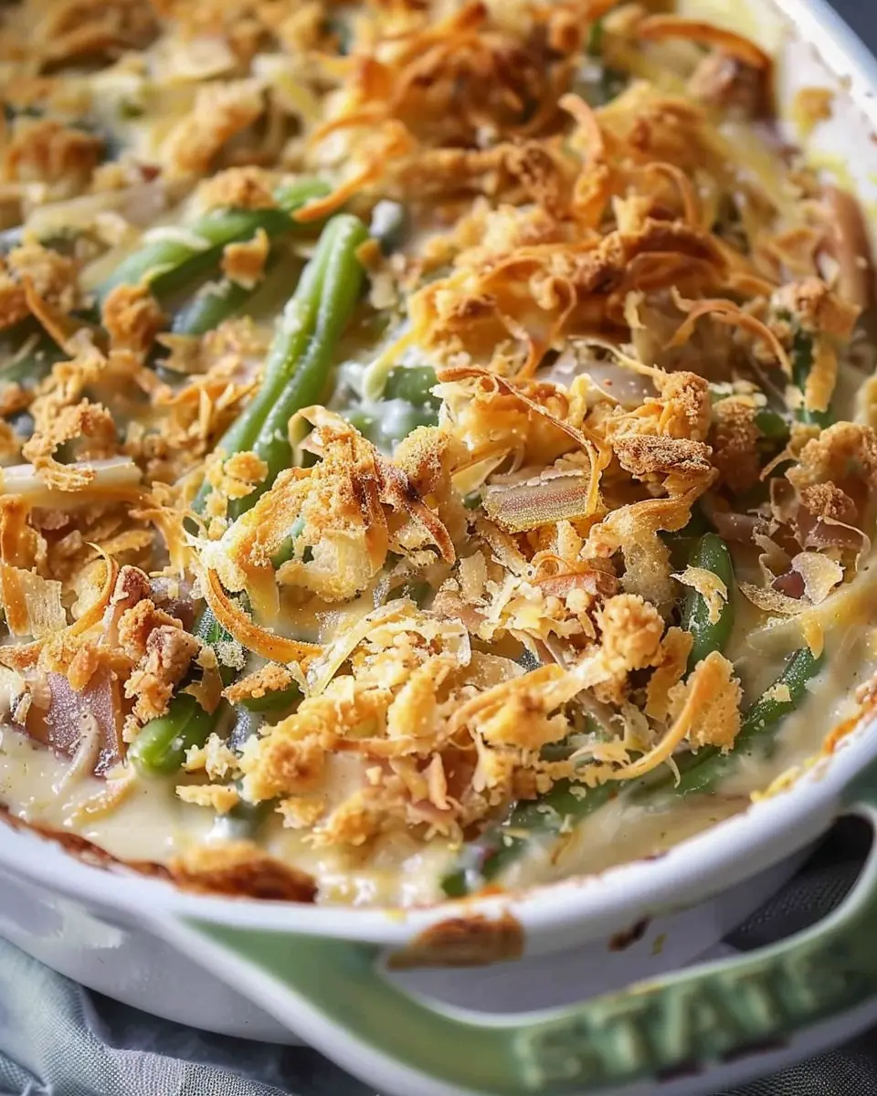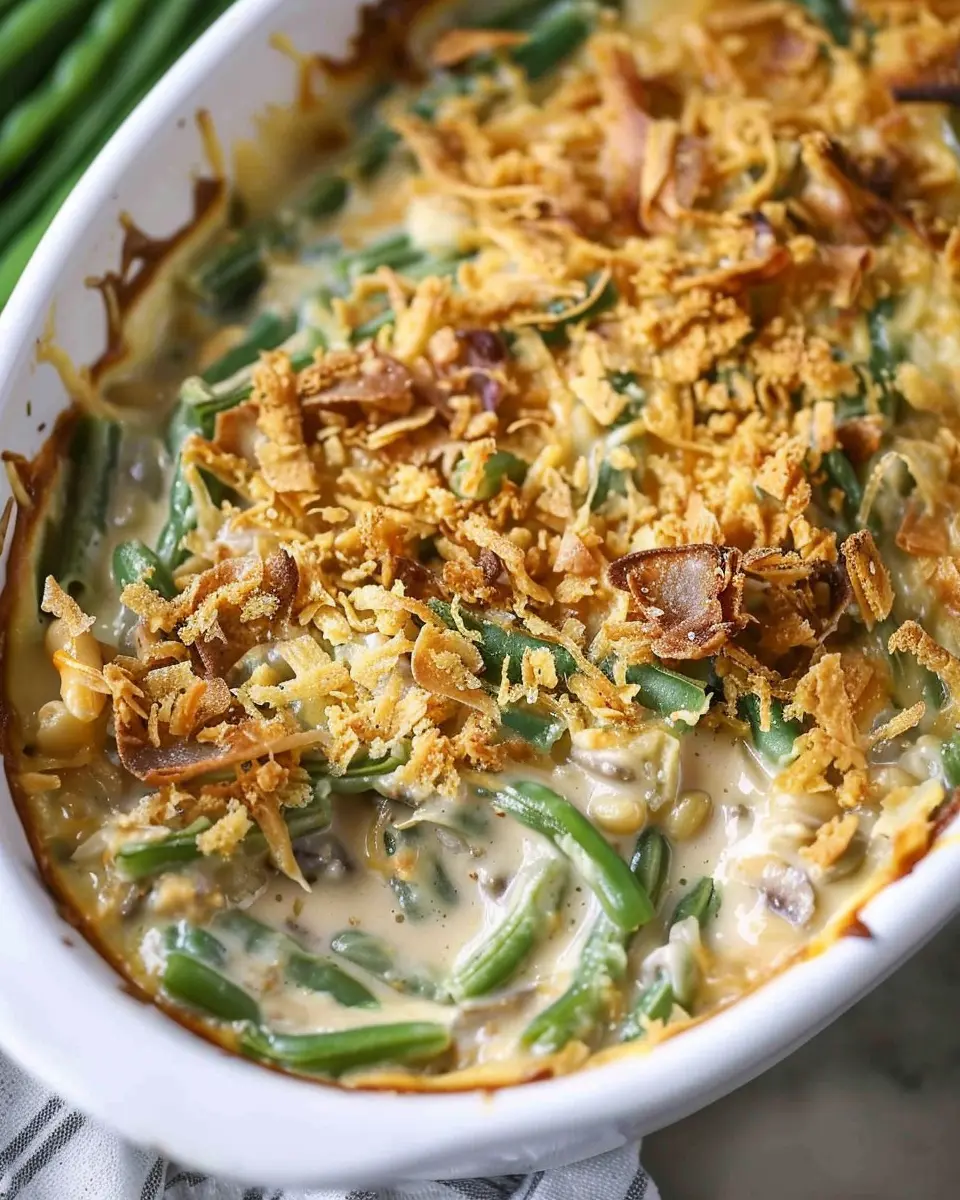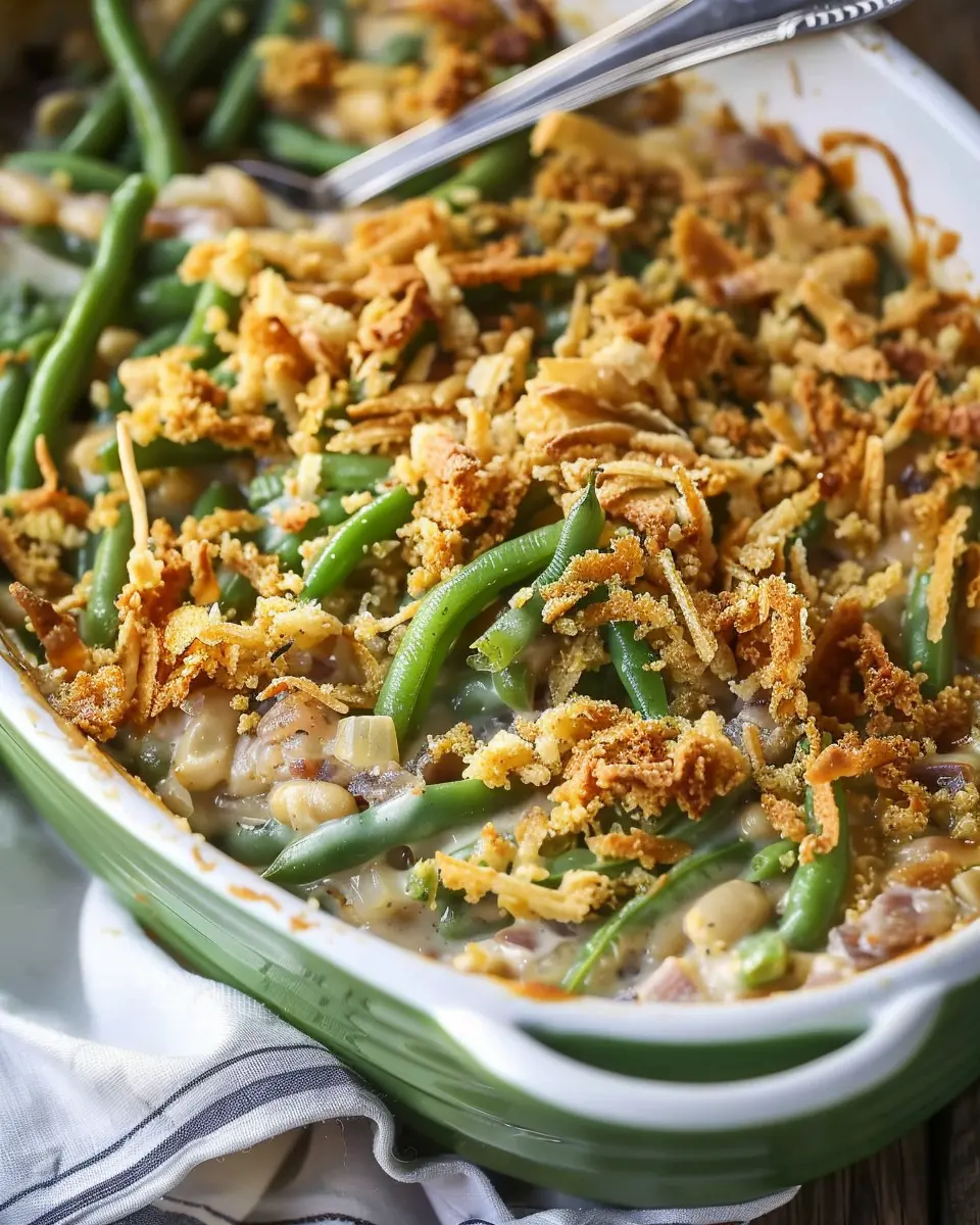 Irresistible Campbells Green Bean Casserole with Turkey Bacon Delight