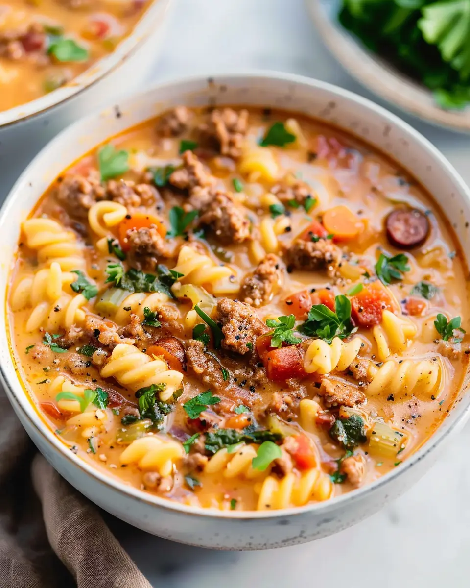 What about the flavor explosion? As the ingredients meld together, the result is nothing short of a culinary hug in a bowl. Made with beef sausage, fresh vegetables, and al dente pasta, each bite is a savory delight. So why not treat yourself to this delightful meal?