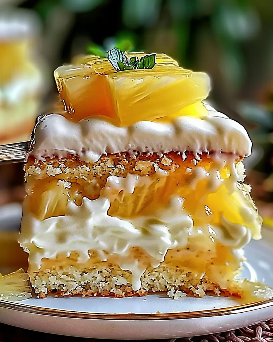 Keywords: Juicy Pineapple Heaven Cake, pineapple cake, light dessert, indulgent dessert