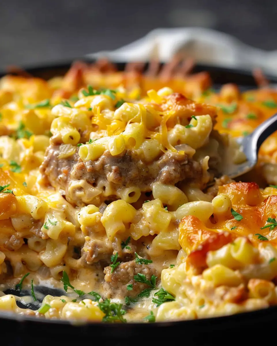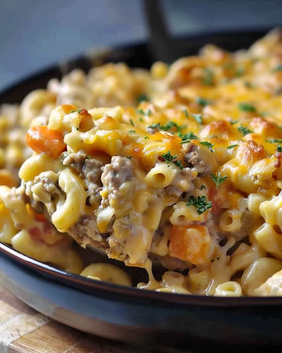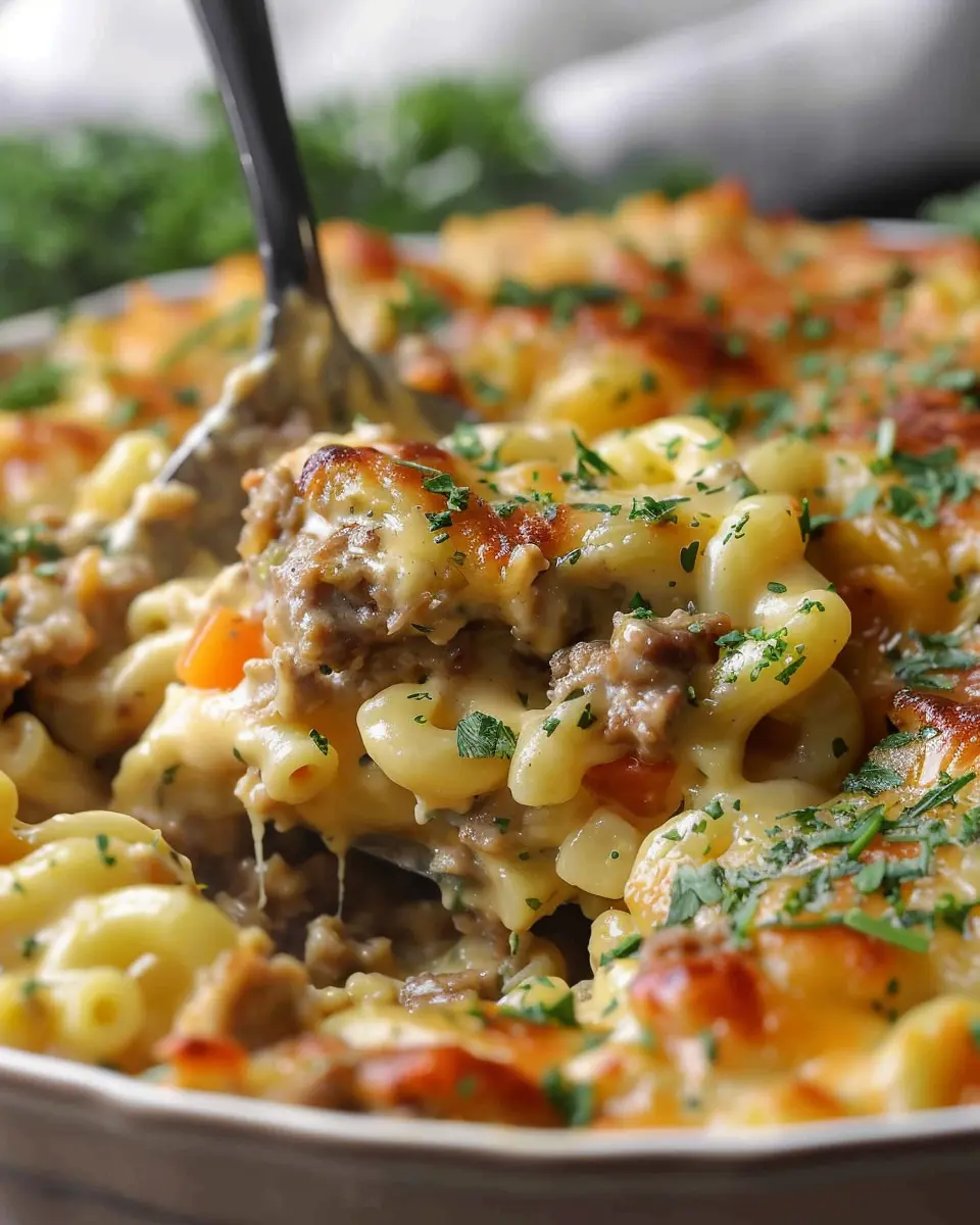 Flavor Explosion: Imagine the cheesy, creamy goodness of mac and cheese melding perfectly with a rich, beefy filling—this dish offers a delightful explosion of flavors in every bite. The use of turkey bacon or chicken ham adds a savory smokiness, elevating the overall experience.