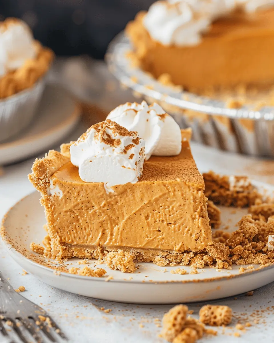 Before serving, consider adding a dollop of homemade whipped cream or a sprinkle of crushed graham crackers for texture. A drizzle of caramel sauce can also add a touch of elegance and sweetness to each slice.
