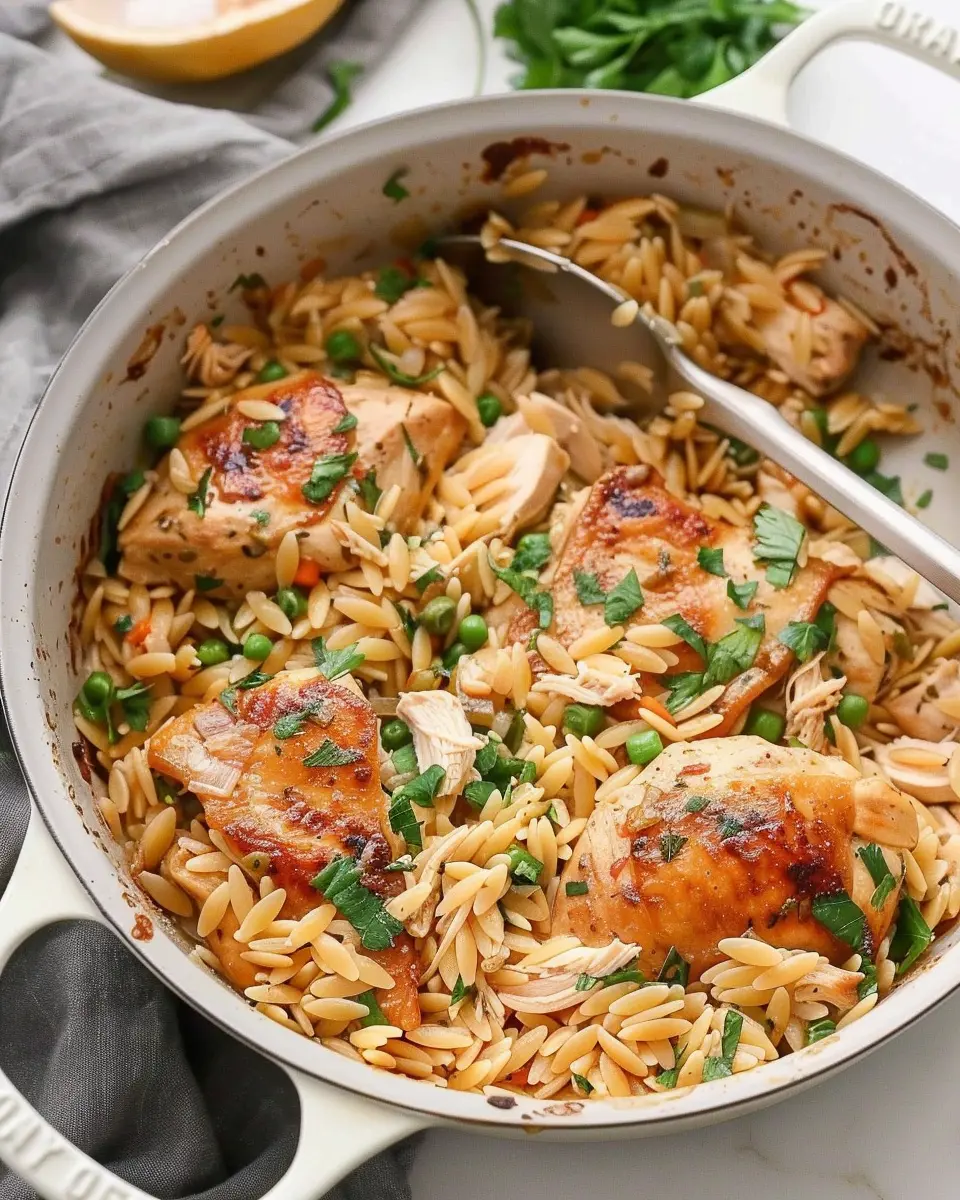 Keywords: One Pot Chicken Orzo, chicken recipes, cozy dinner, family recipes