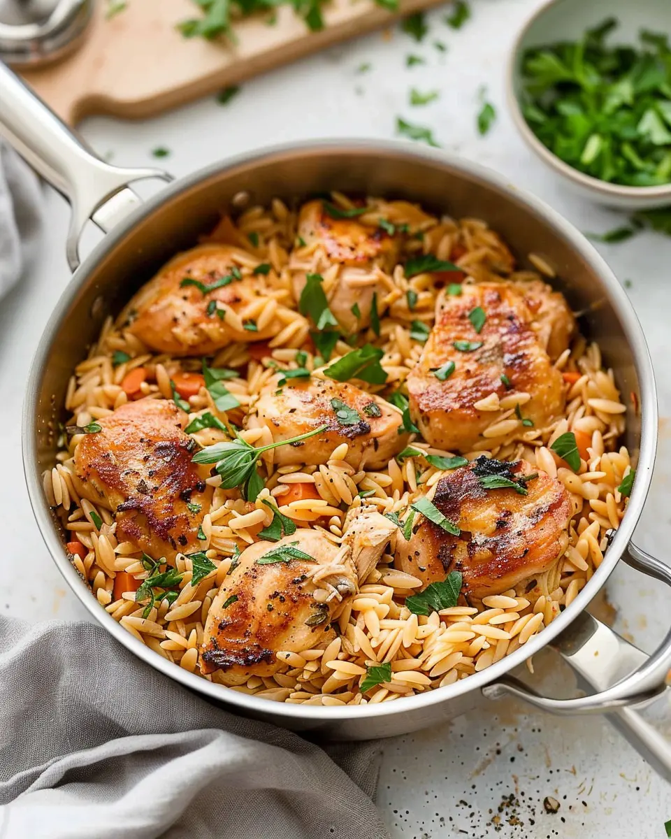 Once everything’s prepped, the magic happens in about 30 minutes. You’ll brown your chicken, sauté your veggies, and let the flavors meld beautifully as the orzo cooks. It’s as simple as that!