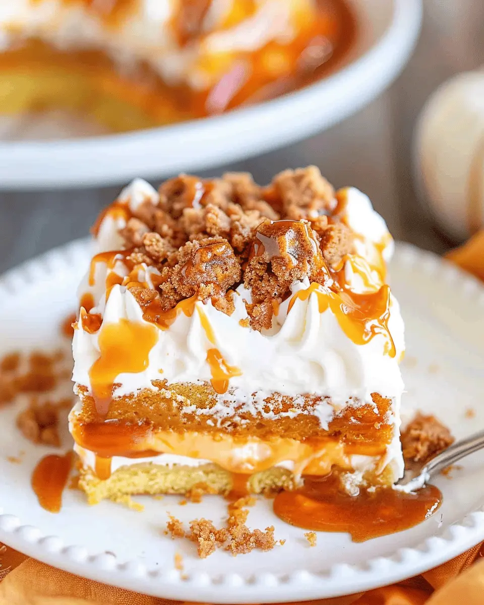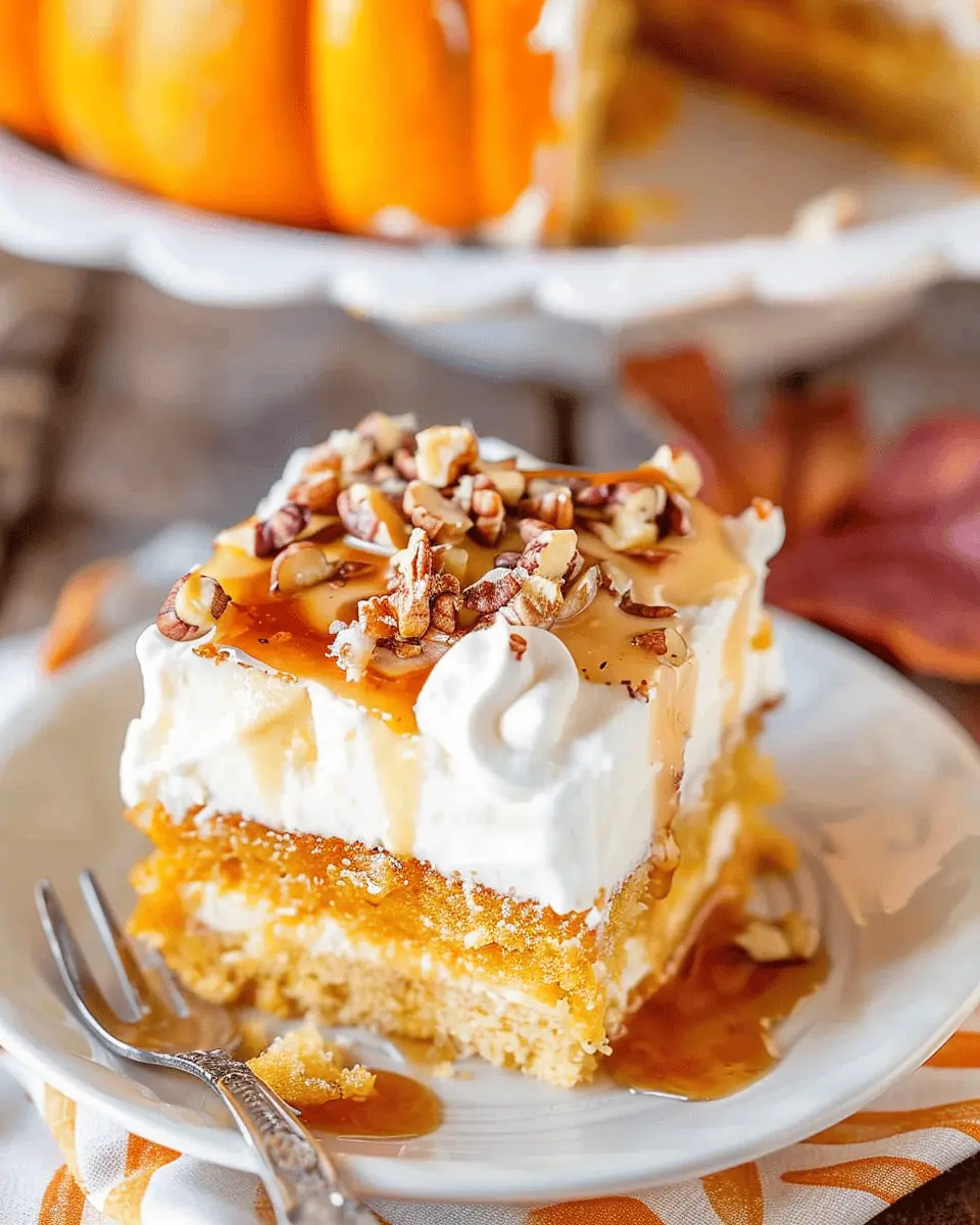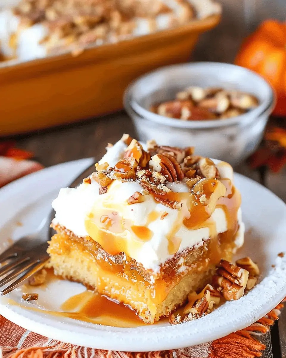 Versatile Topping: Whether you prefer whipped cream, a sprinkle of nuts, or a drizzle of caramel, you can customize your pumpkin poke cake to fit your palate. This makes serving it a unique experience each time!
