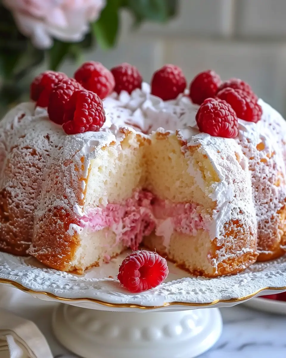 Raspberry Angel Food Cake is a delightful and airy dessert that combines the sweetness of raspberries with the lightness of angel food cake.
