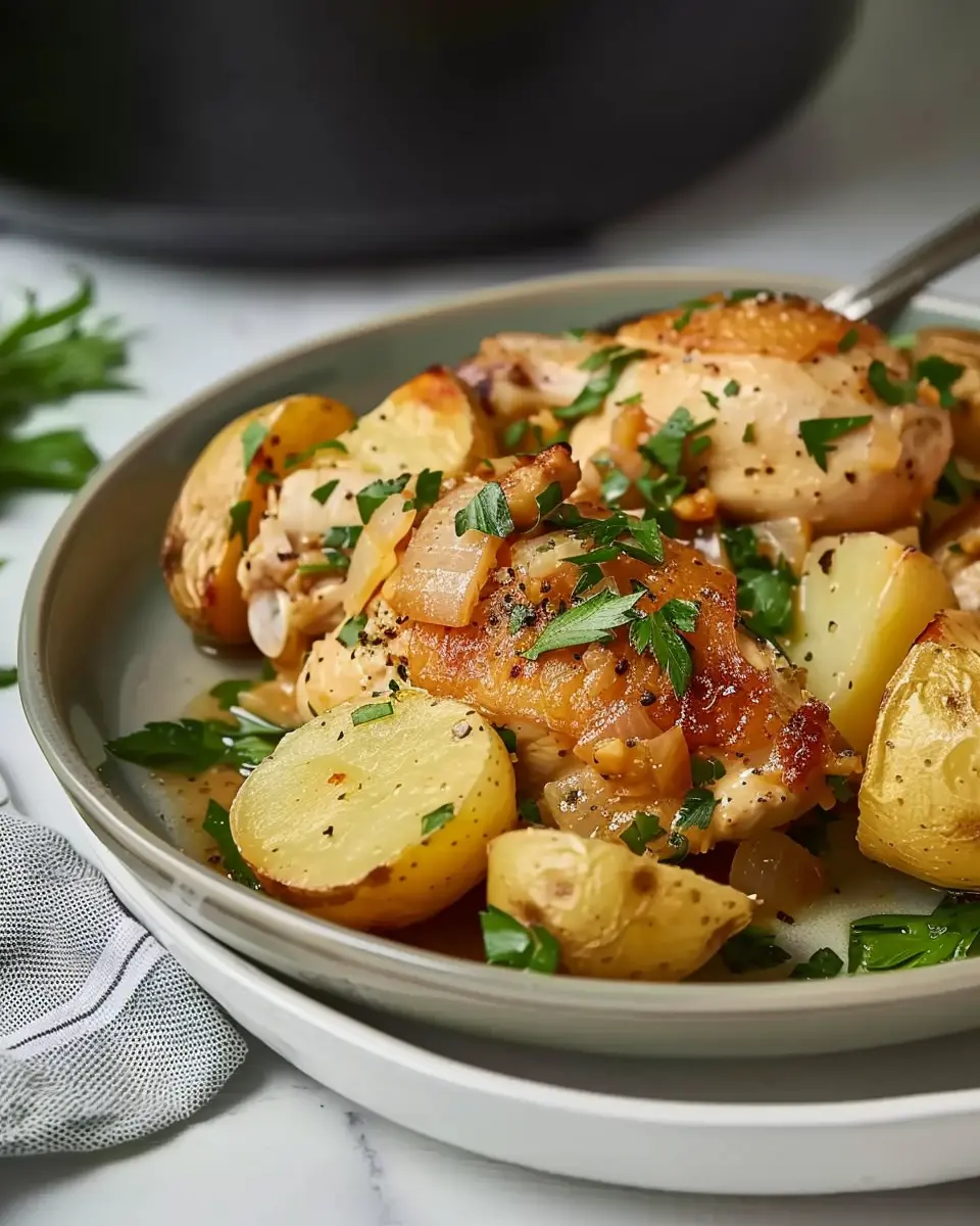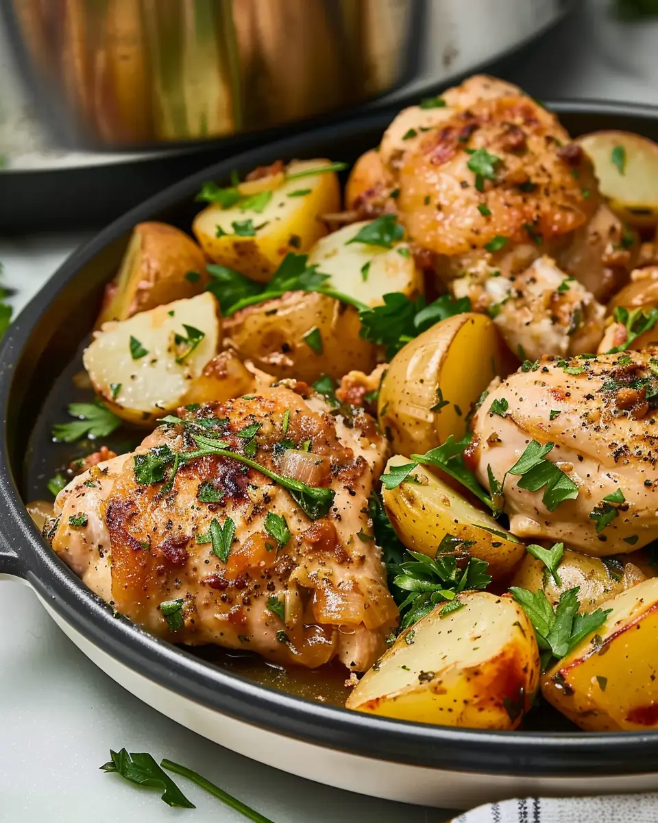 Enjoy the rich flavors of Slow Cooker Parmesan Garlic Chicken and Potatoes that will make your dinner both indulgent and easy to prepare.