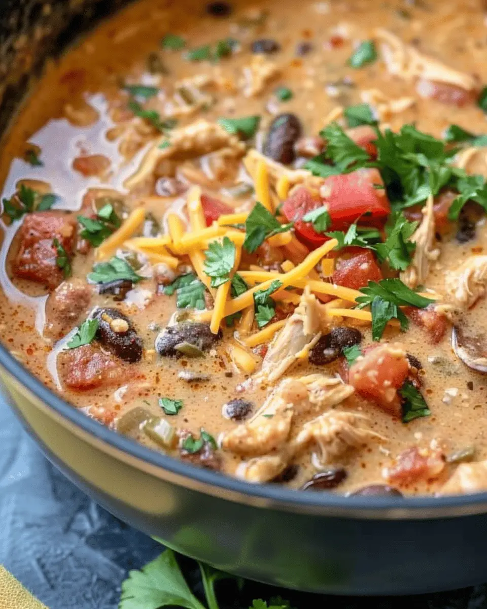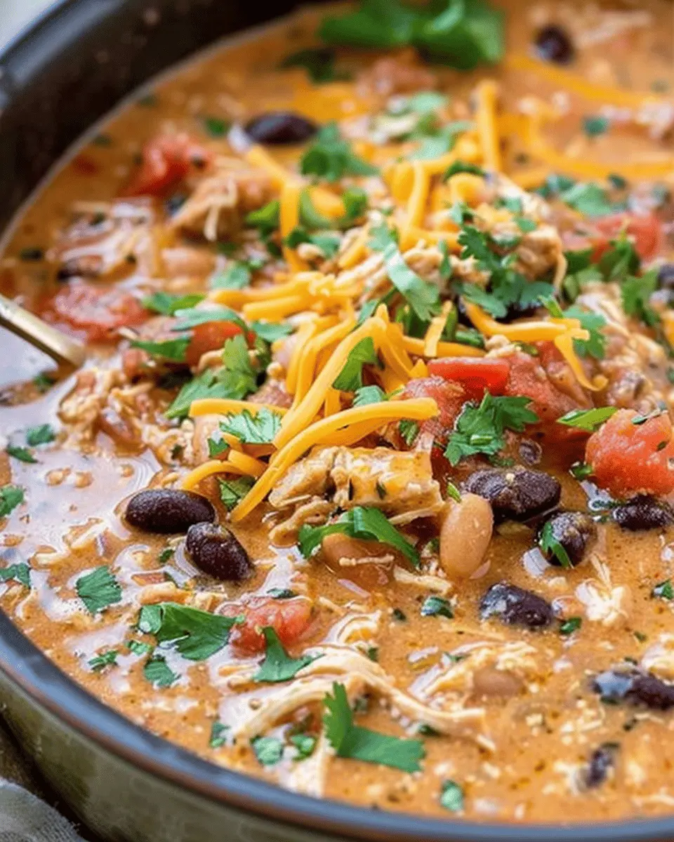 PrintSlow Cooker Cream Cheese Crack Chicken Chili: Indulgent Turkey Bacon Twist