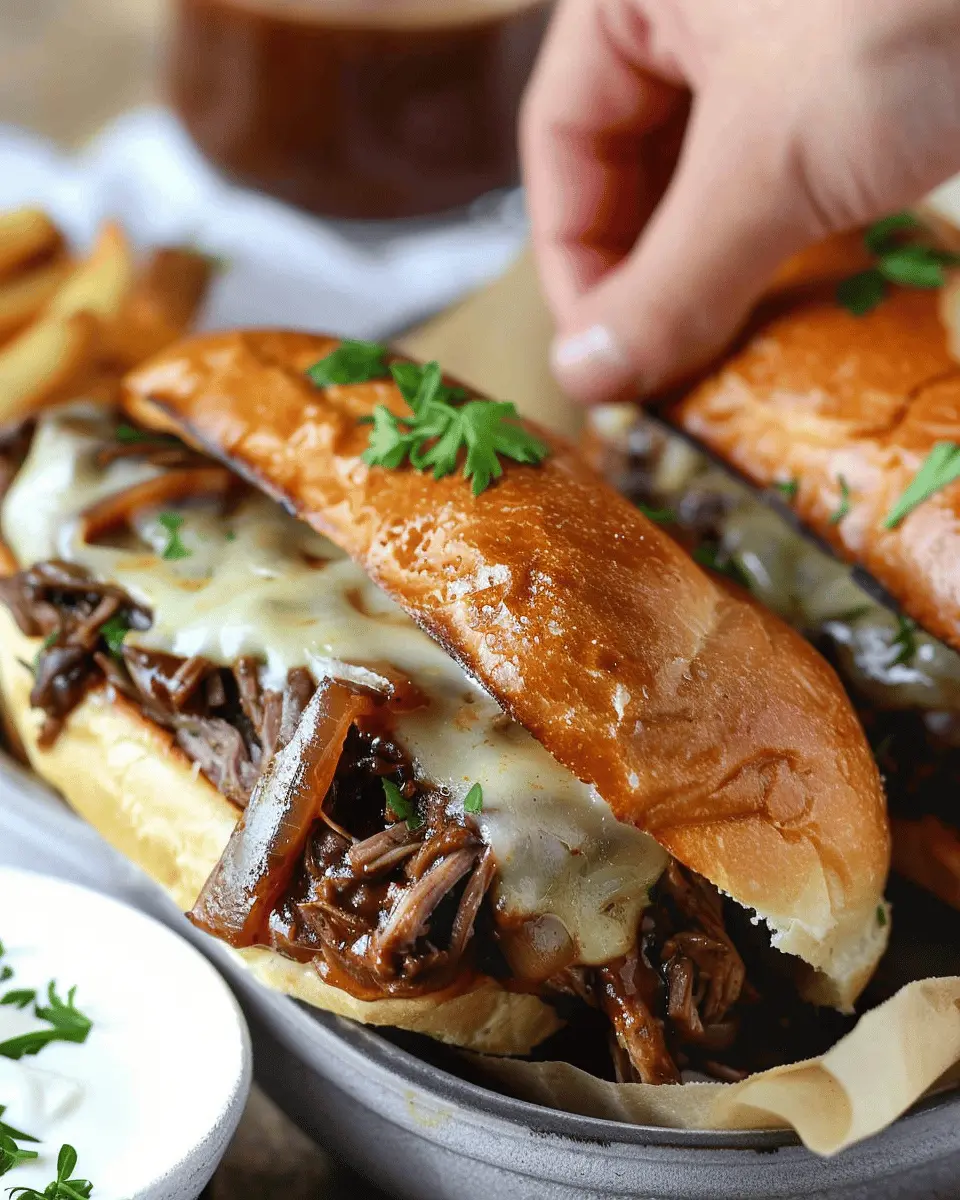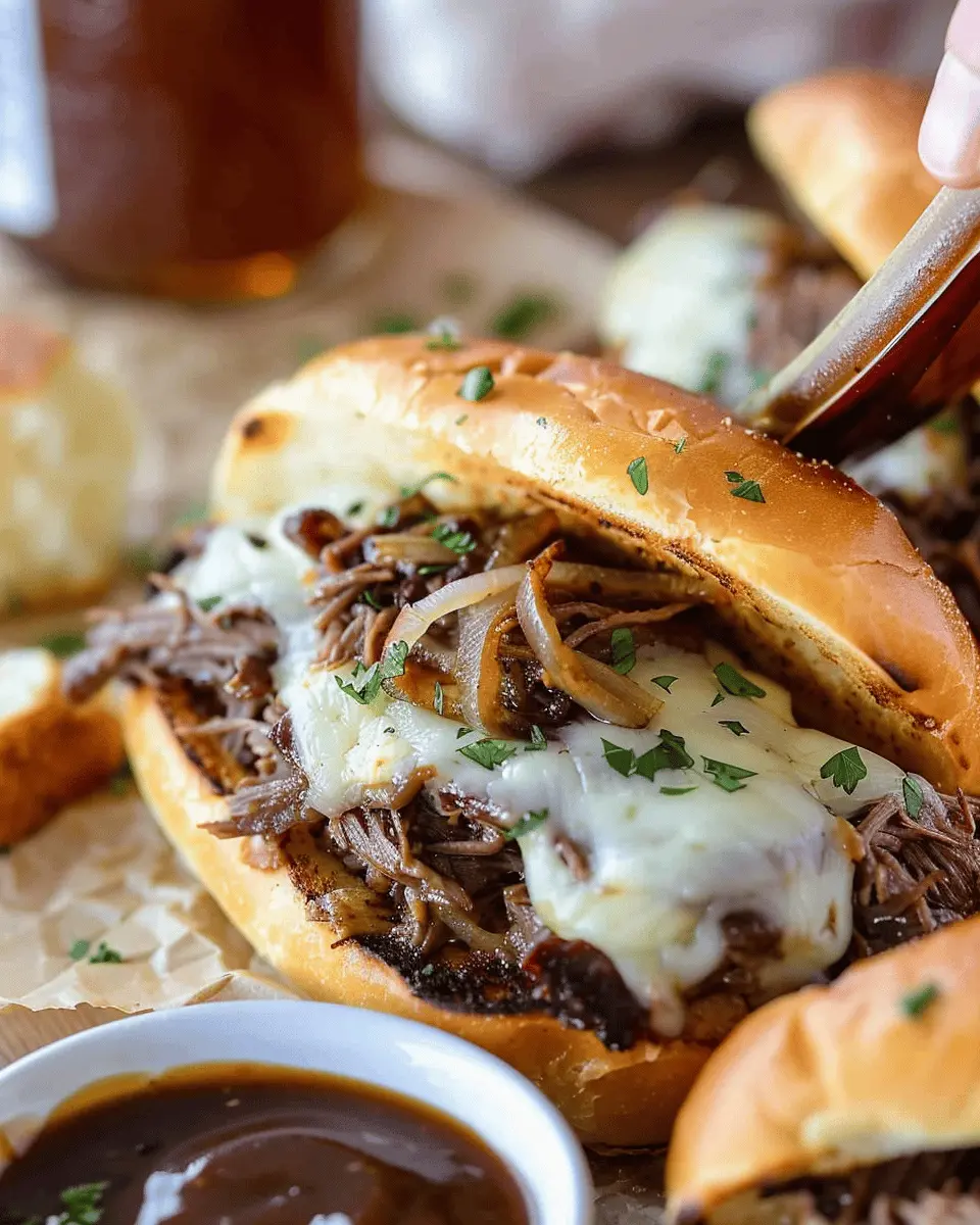 Indulge in the savory delight of Slow Cooker French Dip Sandwiches, perfect for any dinner.