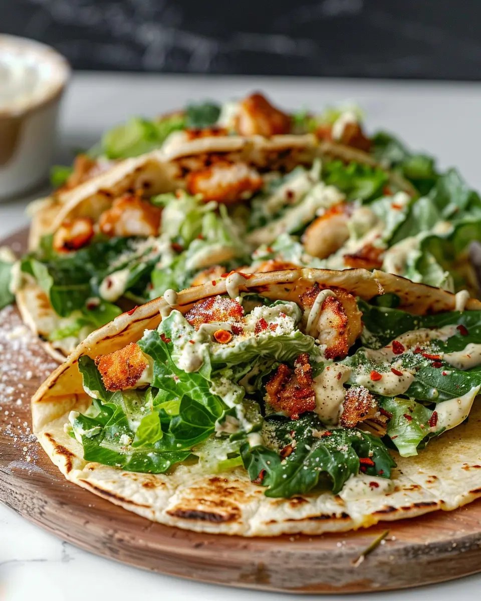 Enjoy a quick and delicious meal with these Smash Chicken Caesar Tacos, perfect for weeknight dinners.