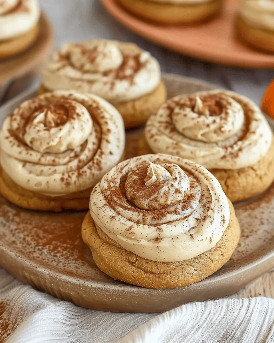Enjoy these deliciously soft pumpkin cookies topped with creamy cinnamon frosting, perfect for fall gatherings.