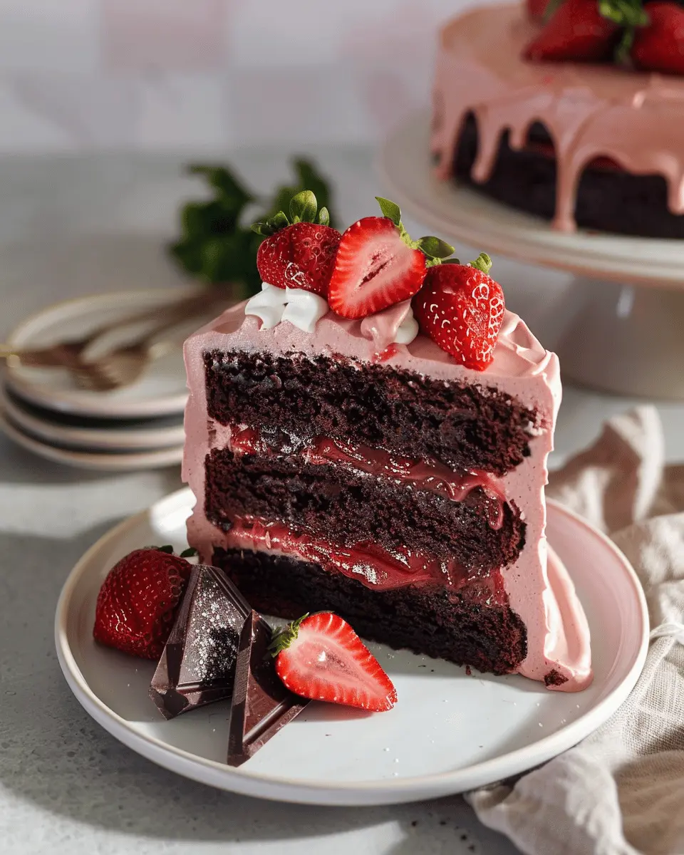 This strawberry chocolate cake is more than just a dessert; it’s an experience that brings joy to any occasion. The harmonious blend of rich chocolate and fresh strawberries creates a delightful flavor profile that is simply irresistible. Whether you’re celebrating a special event or just treating yourself, this cake is sure to impress.